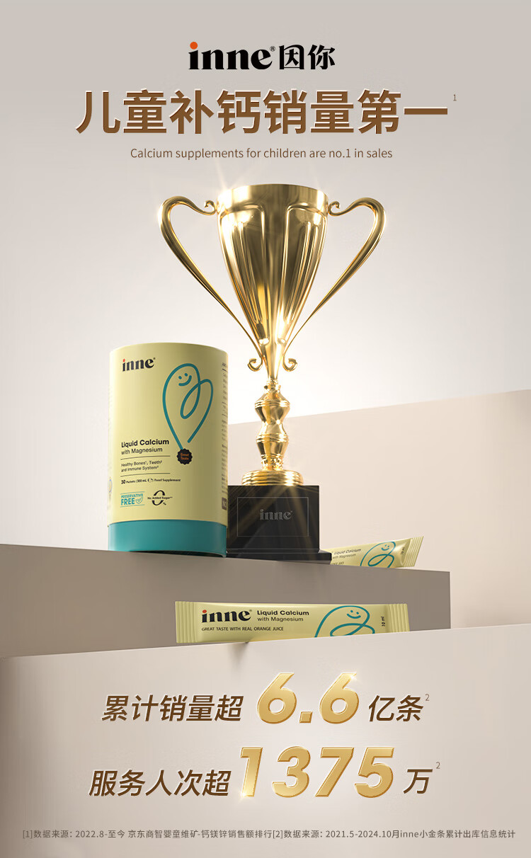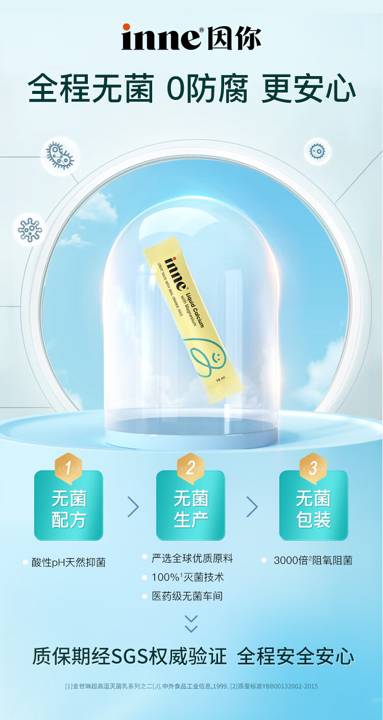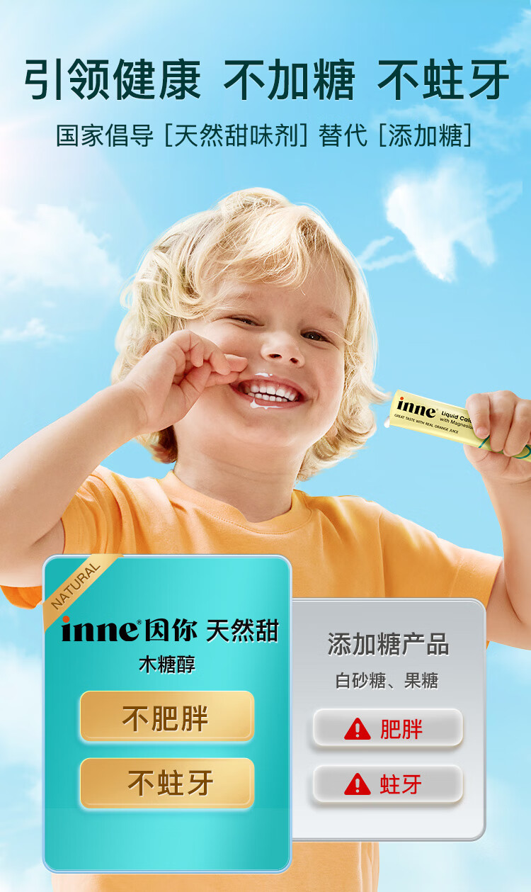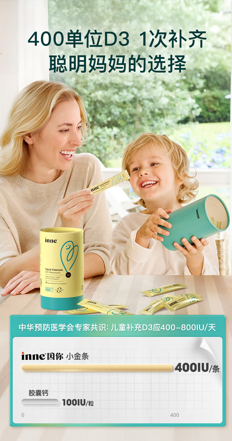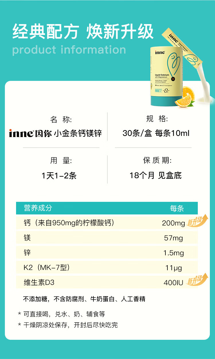 Inne因你小金条钙镁锌儿童液体钙d3婴儿30条*2罐香橙味