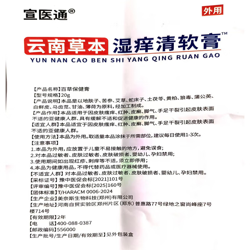 宣医通云南草本湿痒皮肤瘙痒蚊虫叮咬湿疹大腿内侧20g