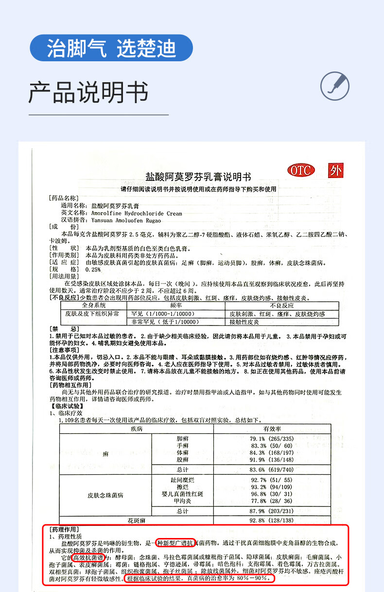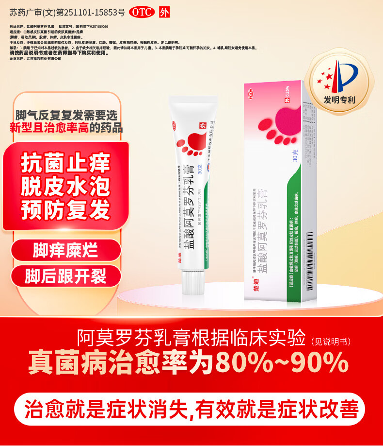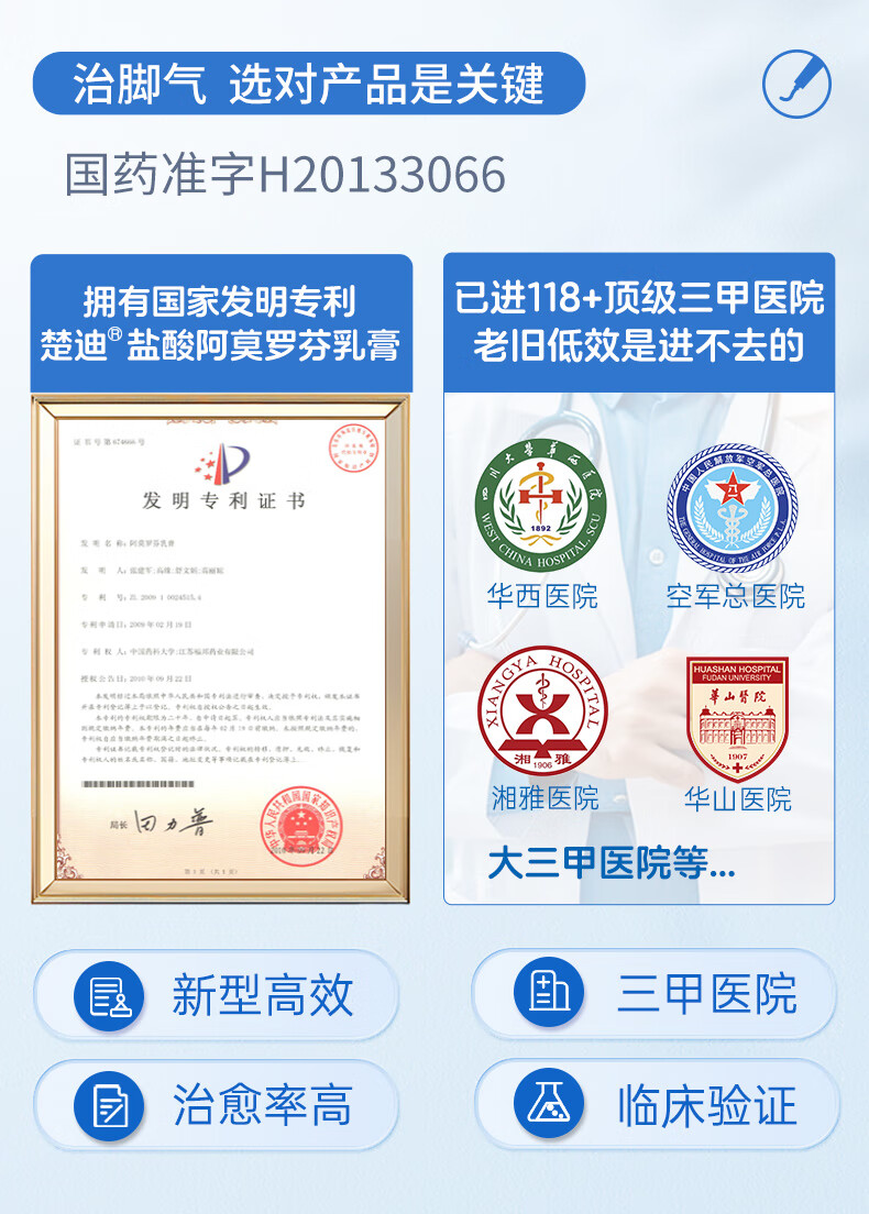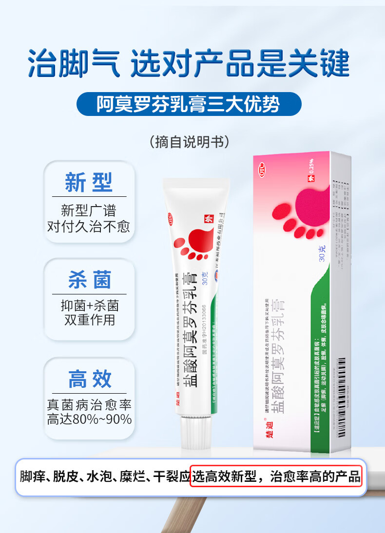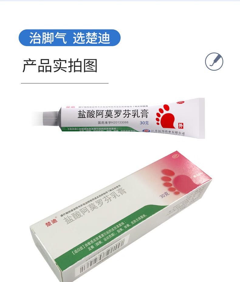 楚迪盐酸阿莫罗芬乳膏30g治脚气药止痒脱皮烂脚丫真菌感染自营去脚气软膏脚出汗脚臭专用药水泡型