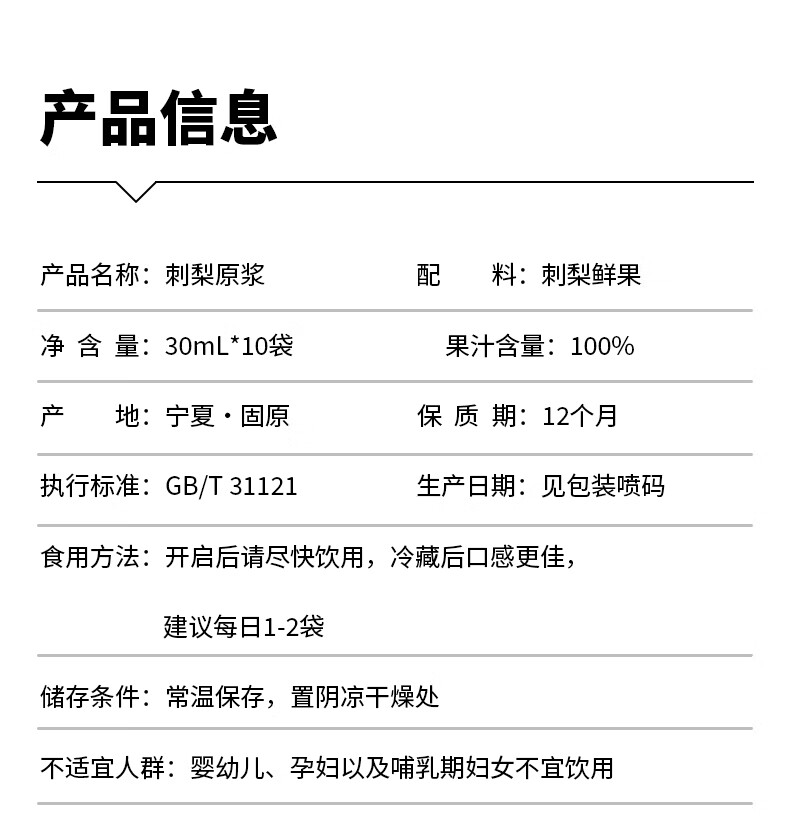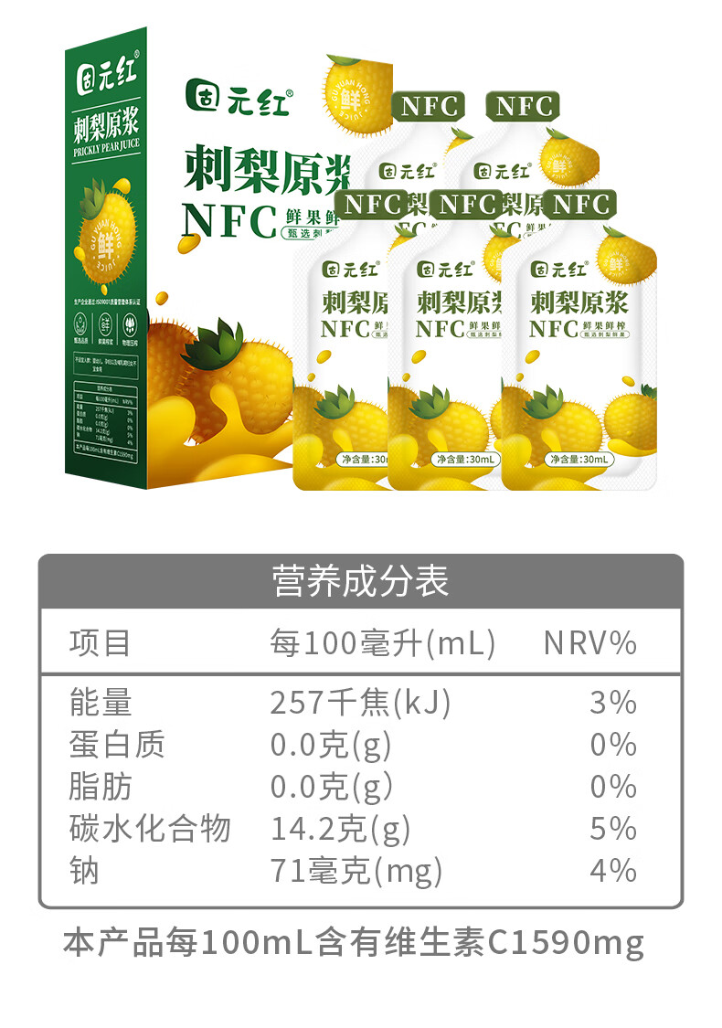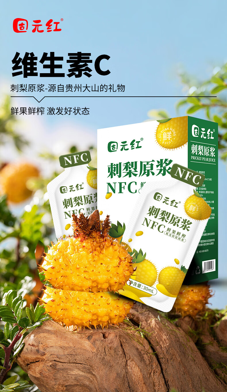 固元红100%刺梨原浆鲜榨贵州大果刺梨汁非饮料高含量维生素C30ml*10袋