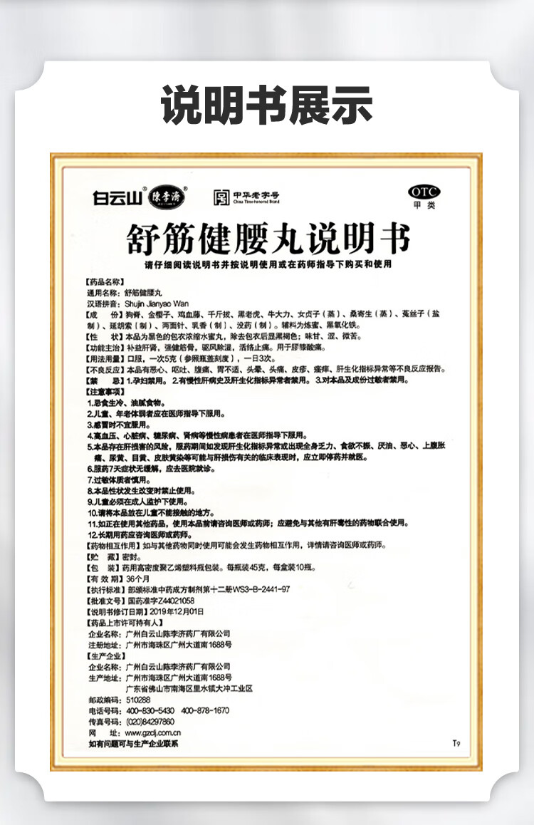 白云山 陈李济 舒筋健腰丸 45g*10瓶*2盒 补益肝肾 强健筋骨 驱风除湿 活络止痛