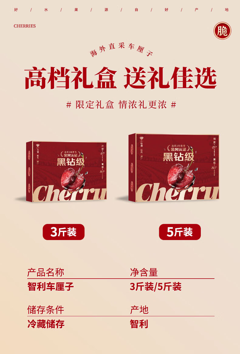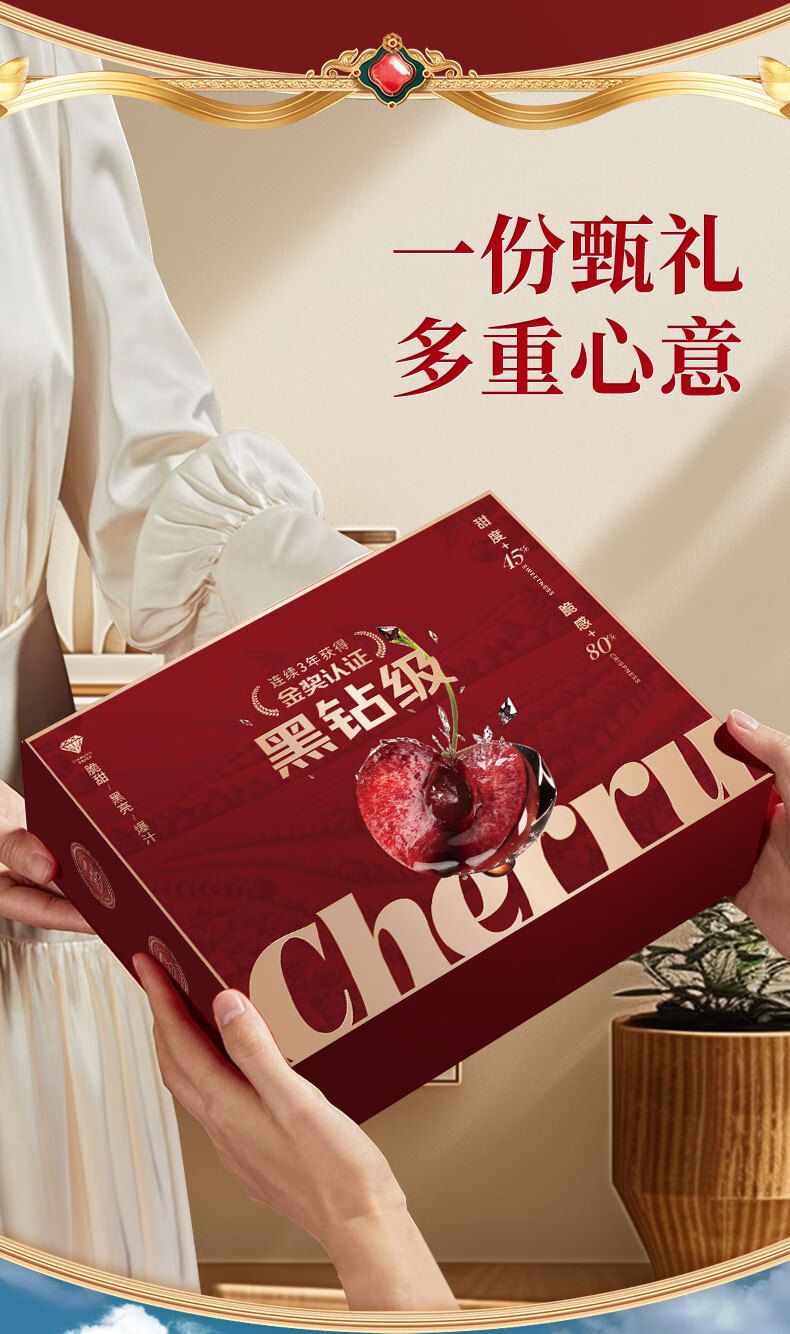山姆大叔 进口车厘子5J礼盒装樱桃【JD顺丰-多地次日达】年货礼品水果礼盒 3斤(净重) 【超值装】爽吃礼盒 【黑钻级】稀有超级果王 5J 34mm+