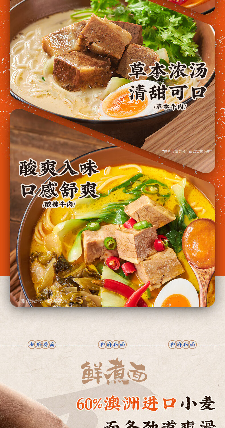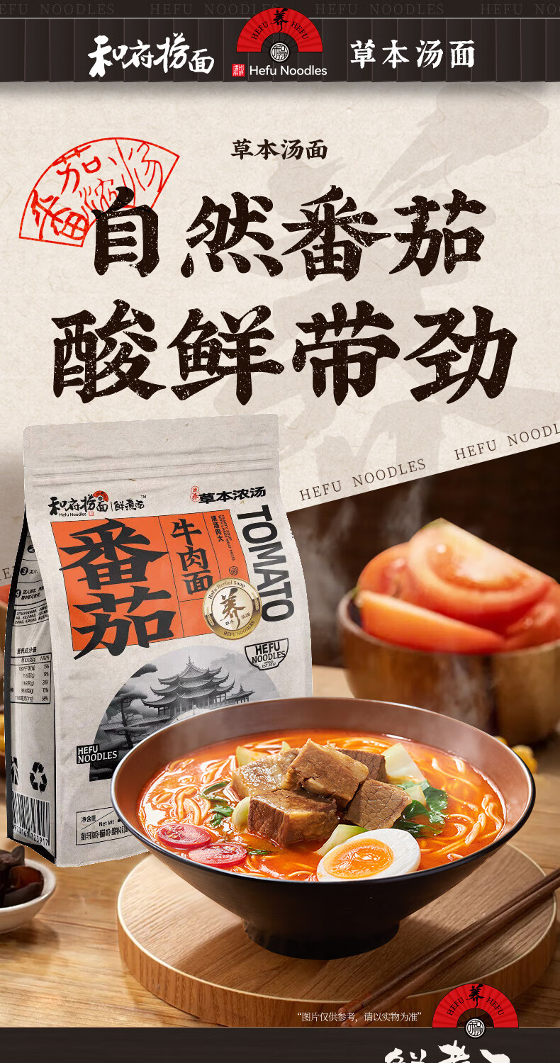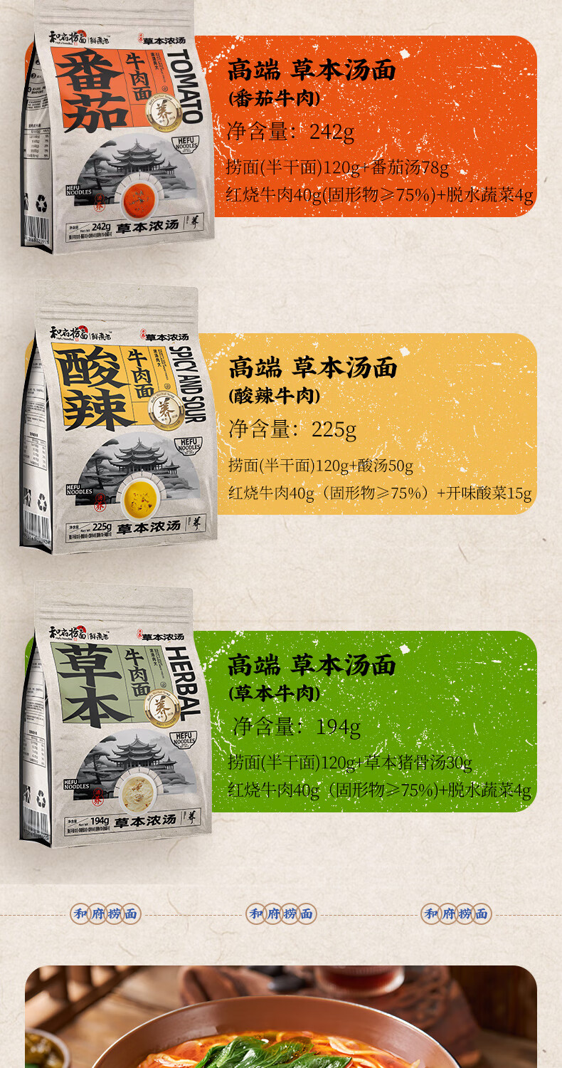 和府捞面番茄草本酸辣牛肉面浓汤面4袋混合装 番茄浓汤*2(无肉)+草本牛肉面*2
