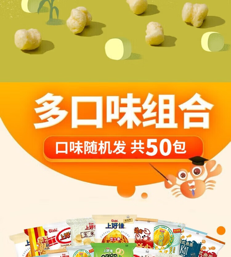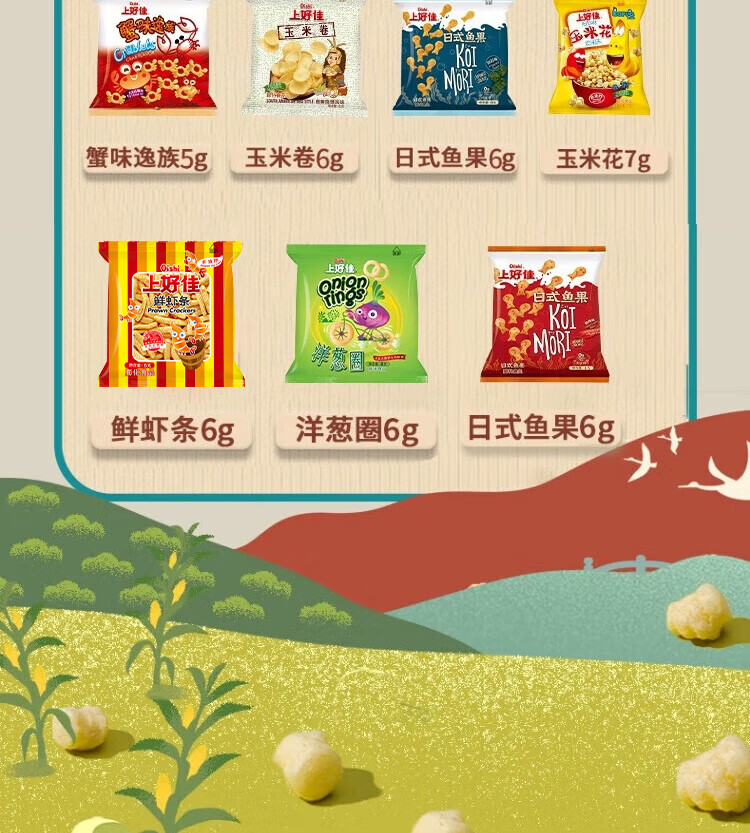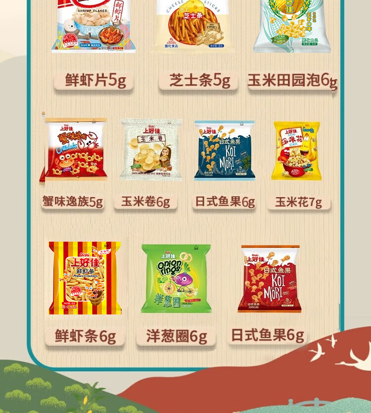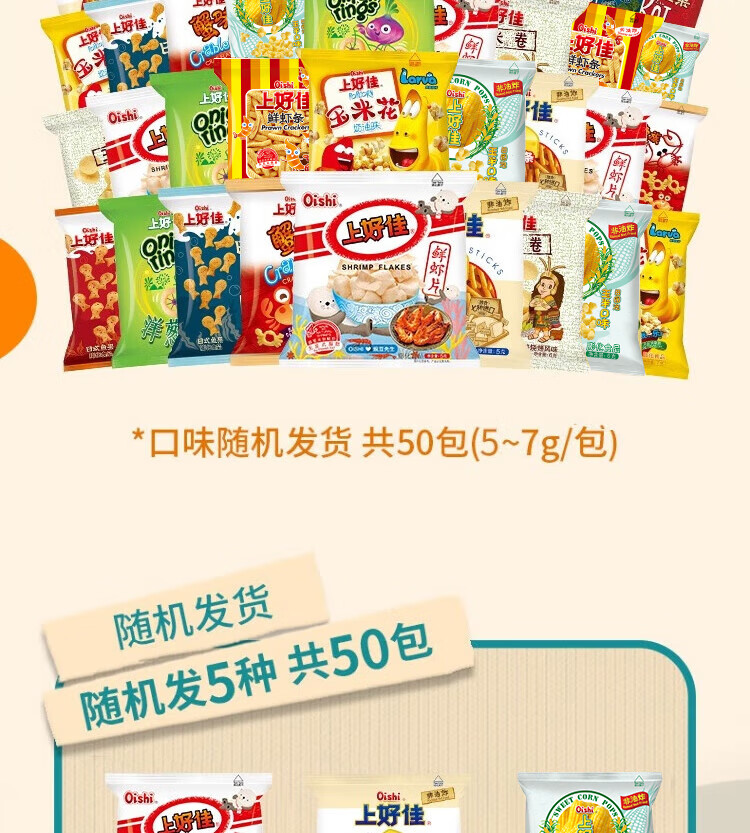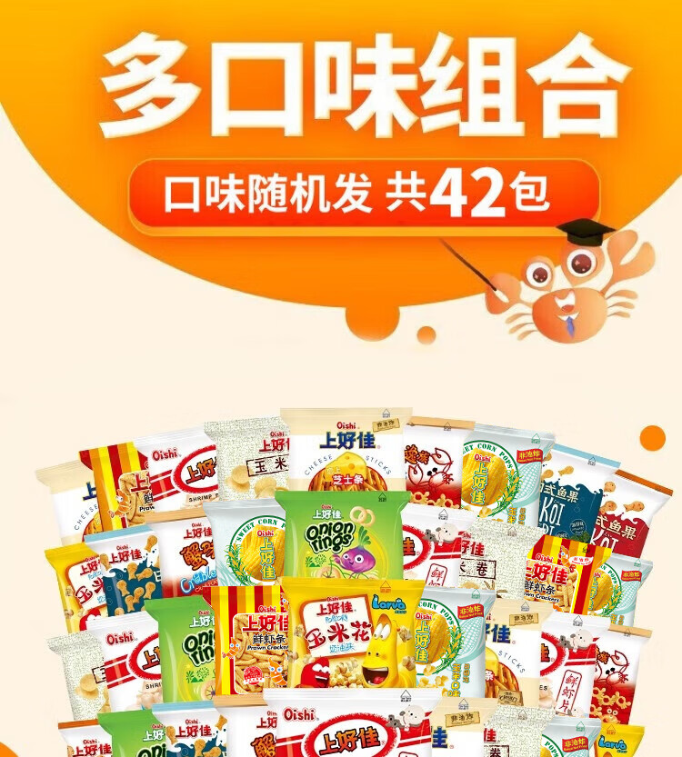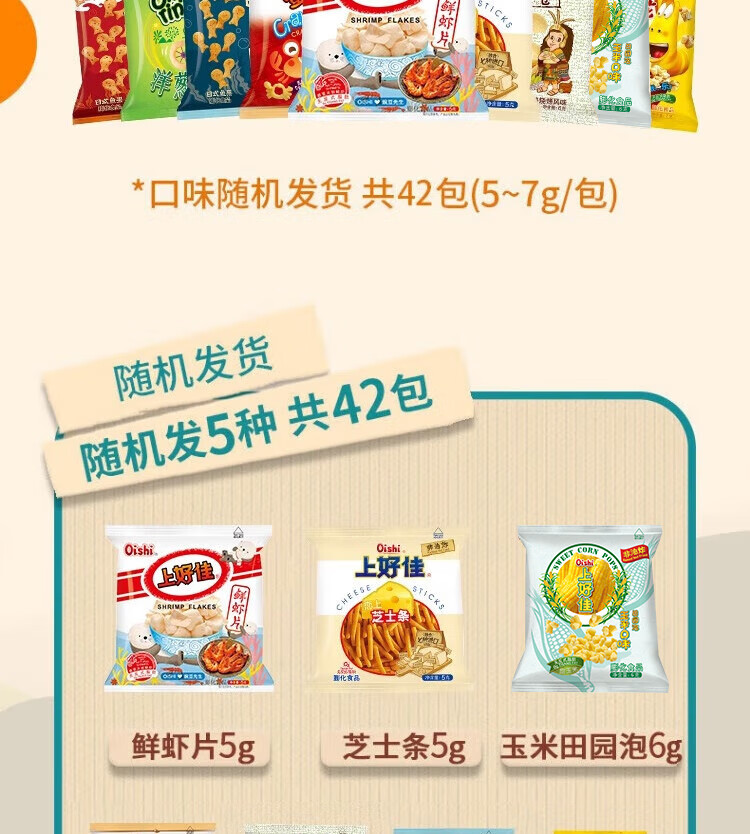 上好佳休闲小零食膨化食品虾片虾条小包装5-7g 42包(口味随机)