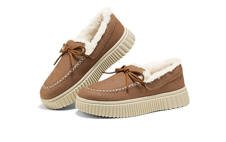 福虹辰新款豆豆鞋女秋冬外穿新款毛毛鞋加绒加厚保暖休闲棉鞋女ZZ 毛球豆豆鞋-咖色 36 偏小一码