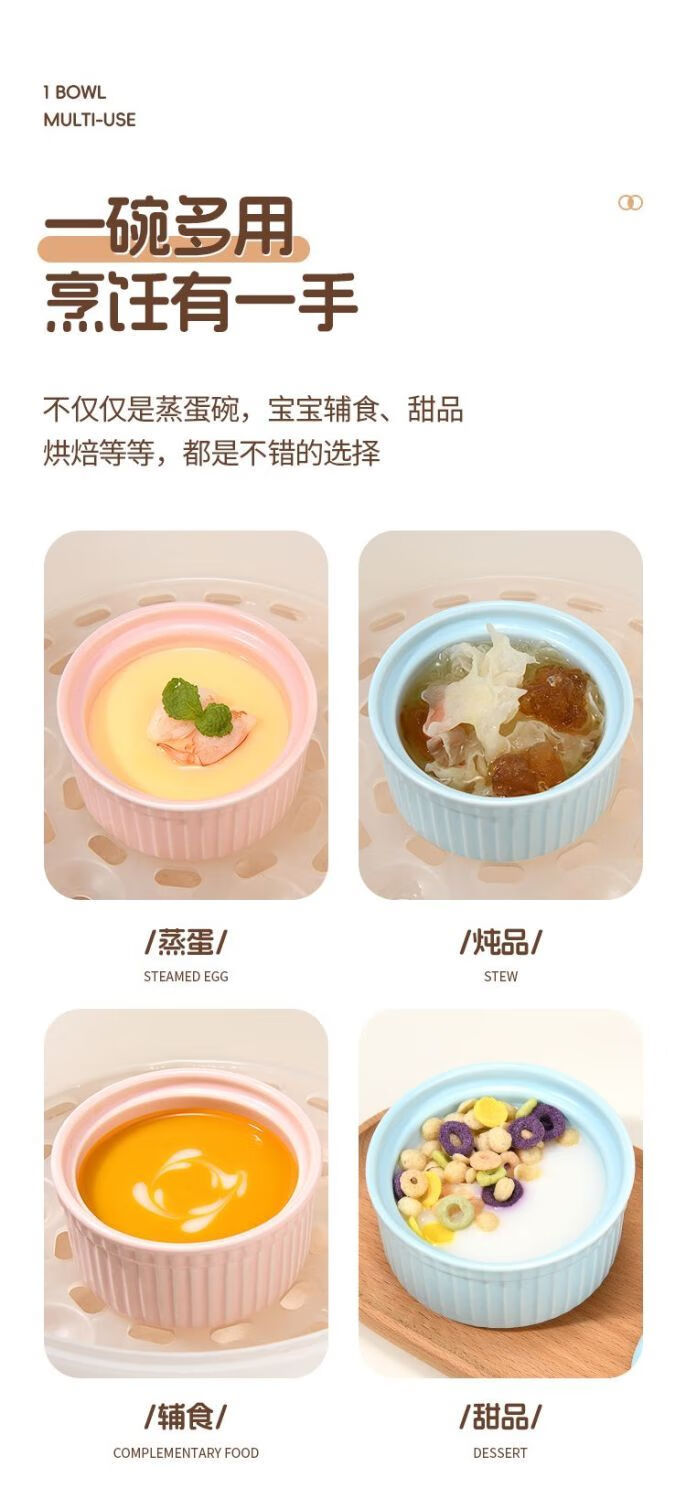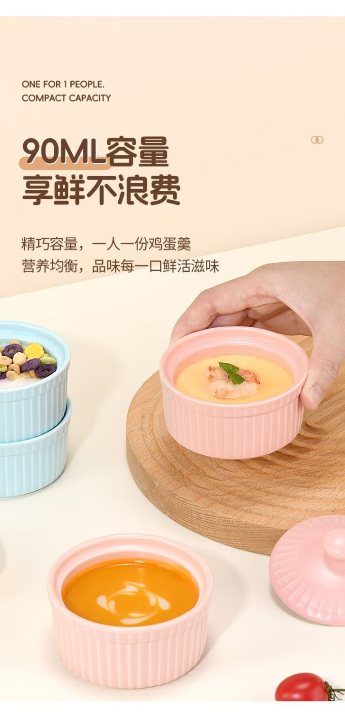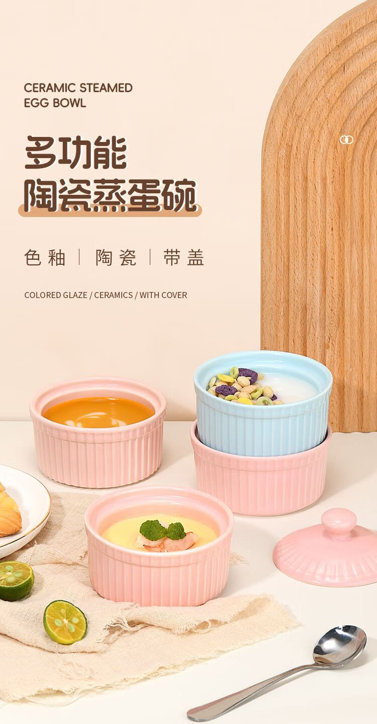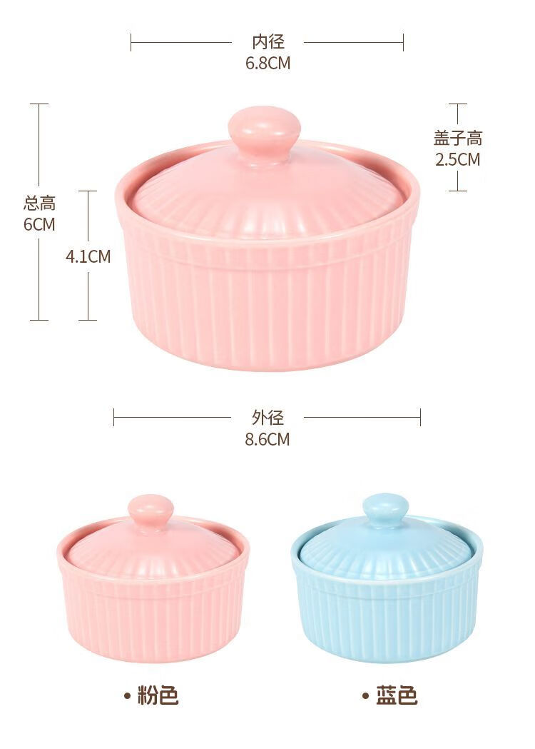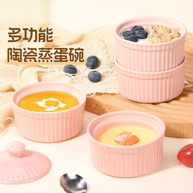 GIOIO宝宝辅食碗迷你陶瓷碗带盖微波炉米糊蒸鸡蛋羹碗用餐小碗 8.6*6cm陶瓷碗-马卡龙粉色