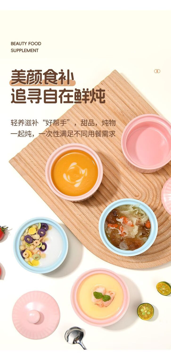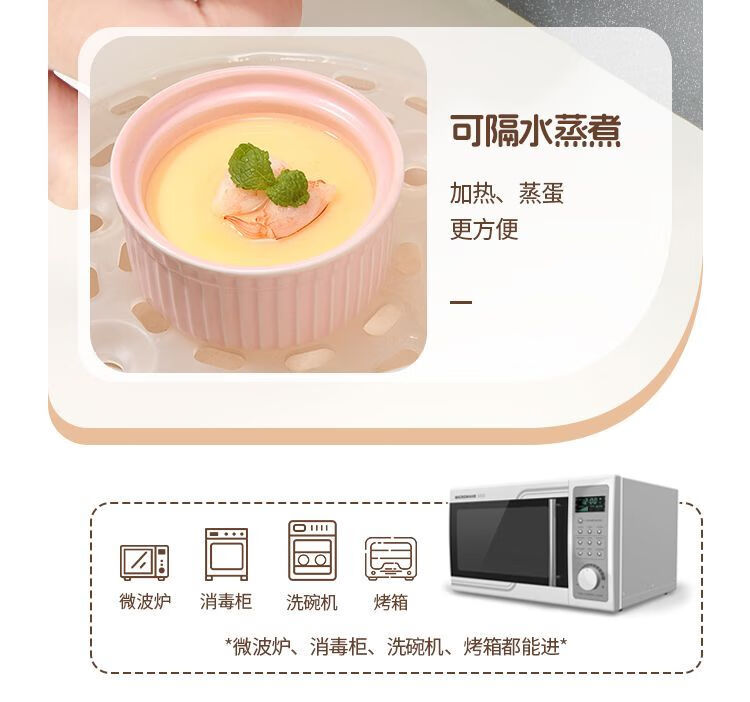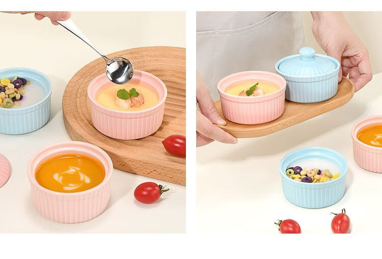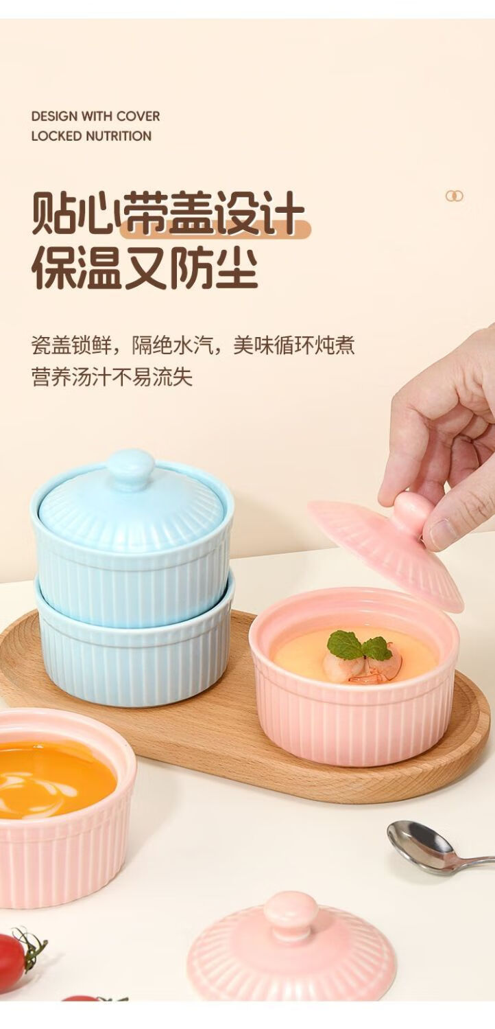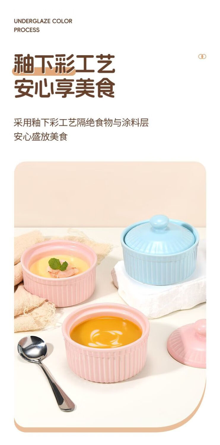 GIOIO宝宝辅食碗迷你陶瓷碗带盖微波炉米糊蒸鸡蛋羹碗用餐小碗 8.6*6cm陶瓷碗-马卡龙粉色