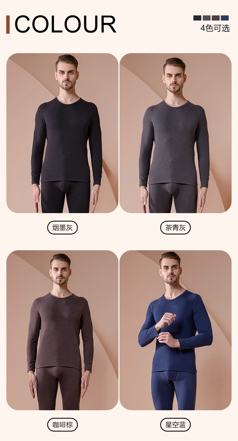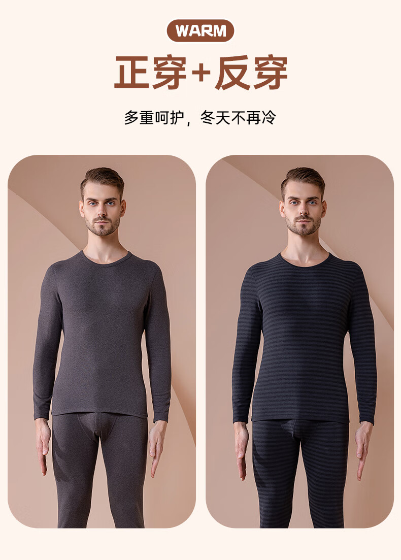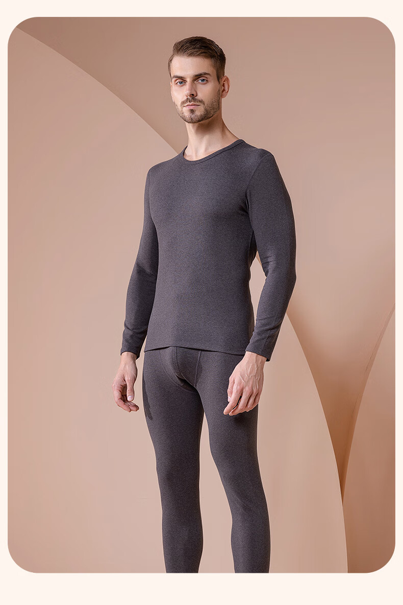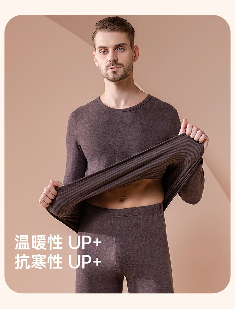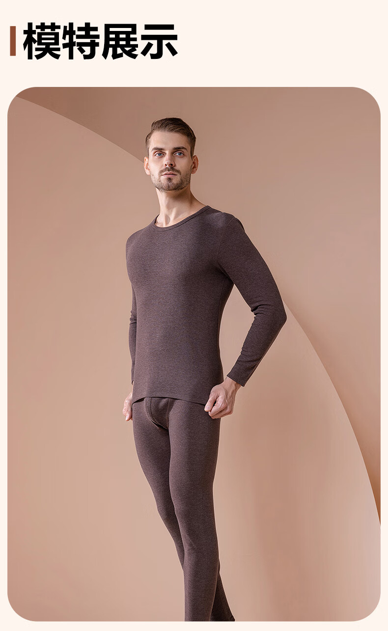鸭鸭保暖内衣男冬季抗寒保暖圆领休闲上衣情侣款睡衣居家服圣诞礼物 咖啡棕 XL