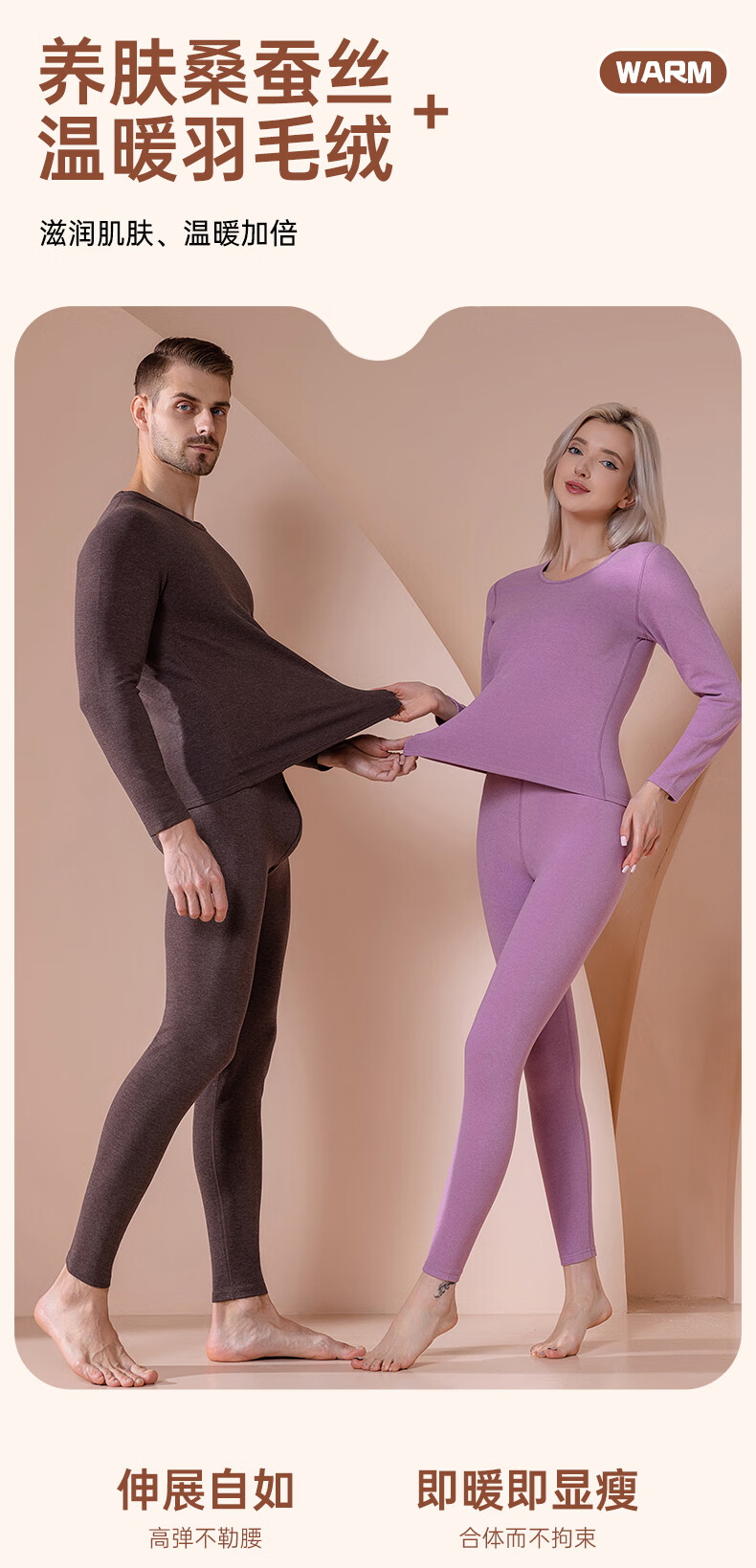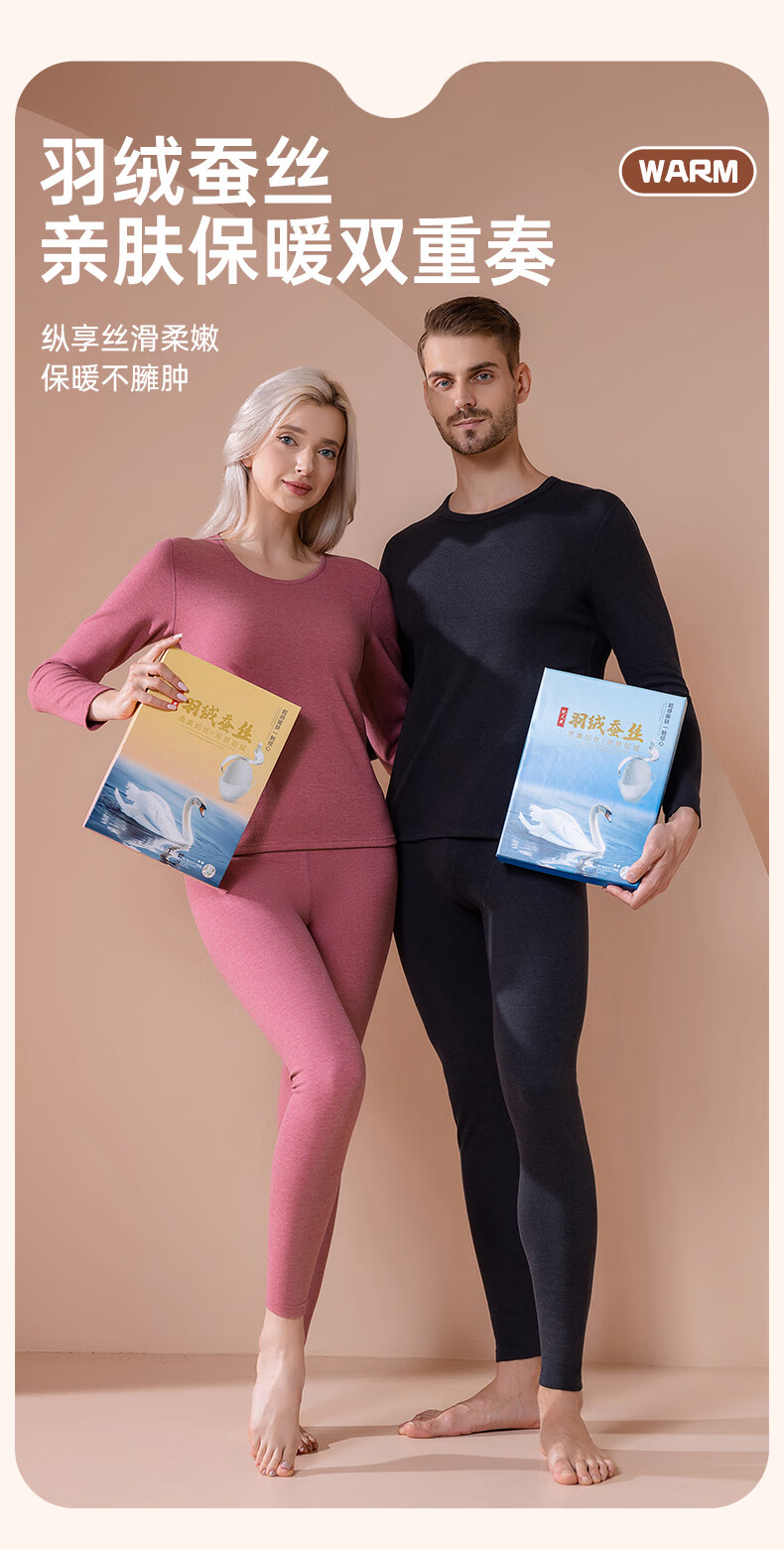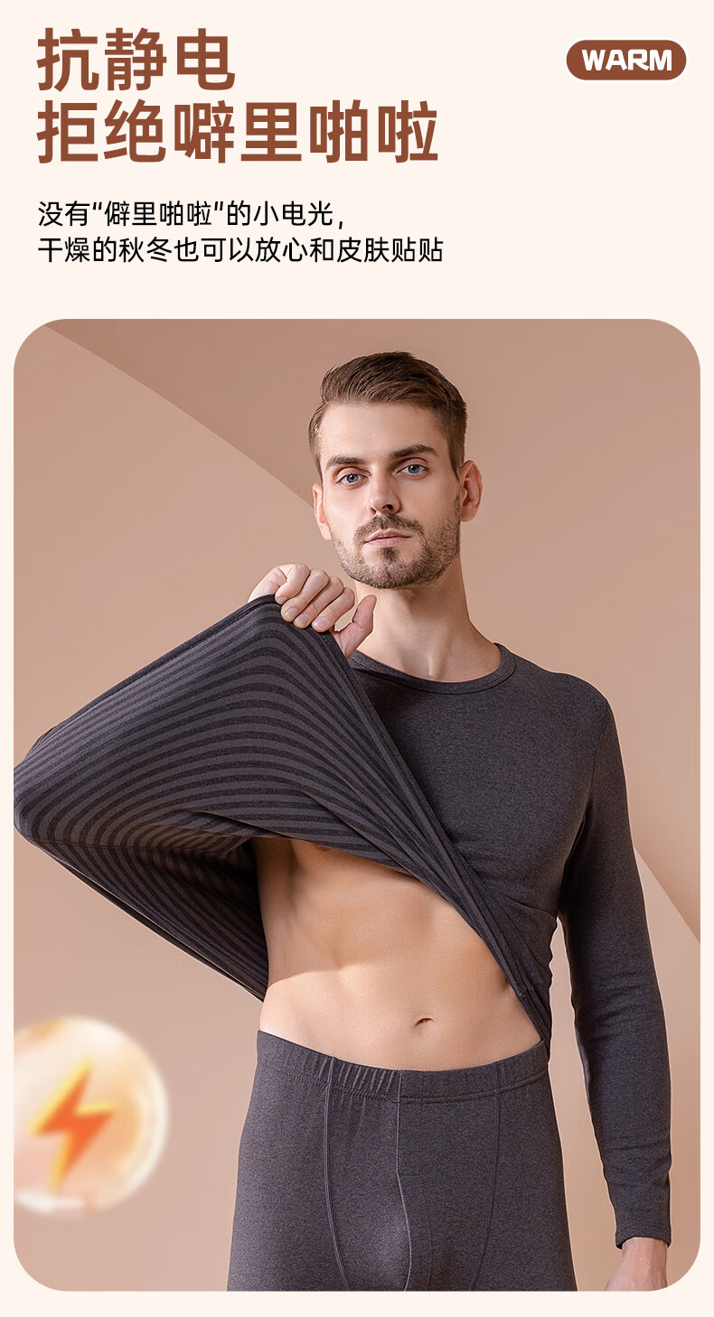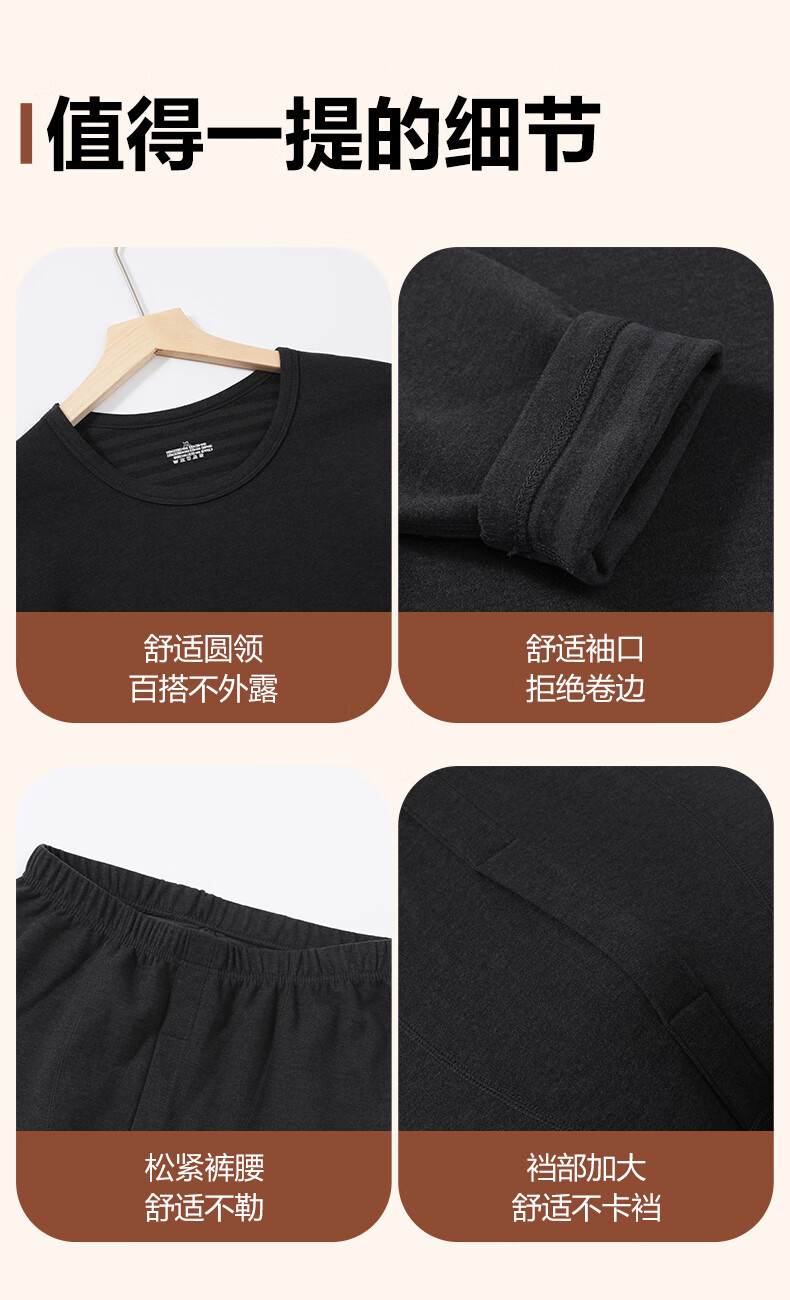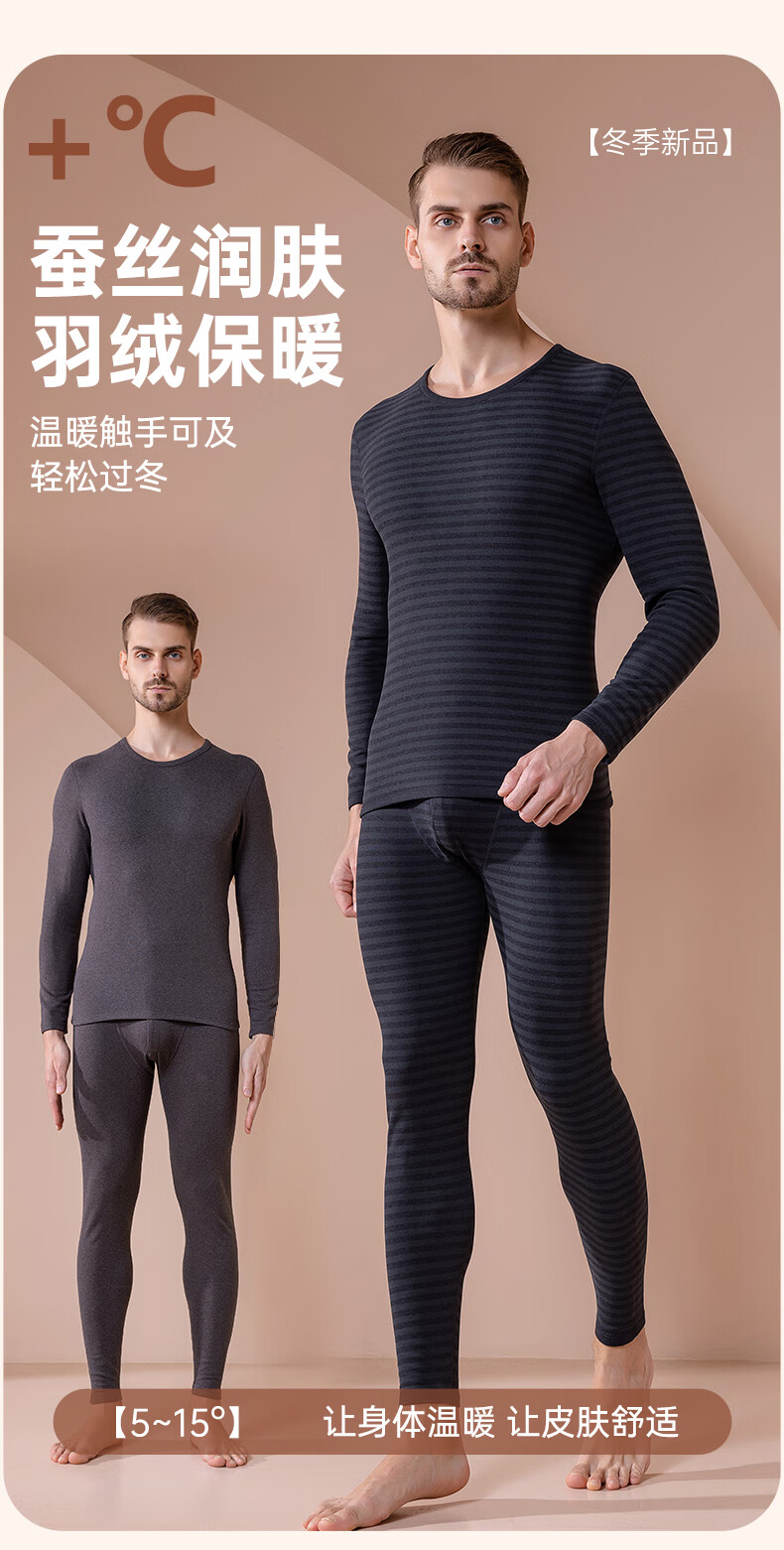 鸭鸭保暖内衣男冬季抗寒保暖圆领休闲上衣情侣款睡衣居家服圣诞礼物 咖啡棕 XL