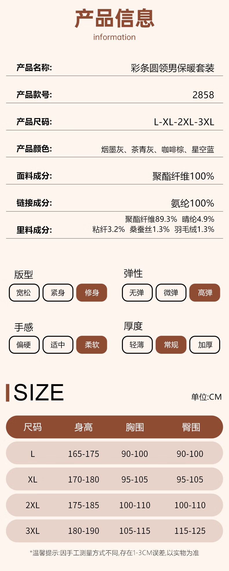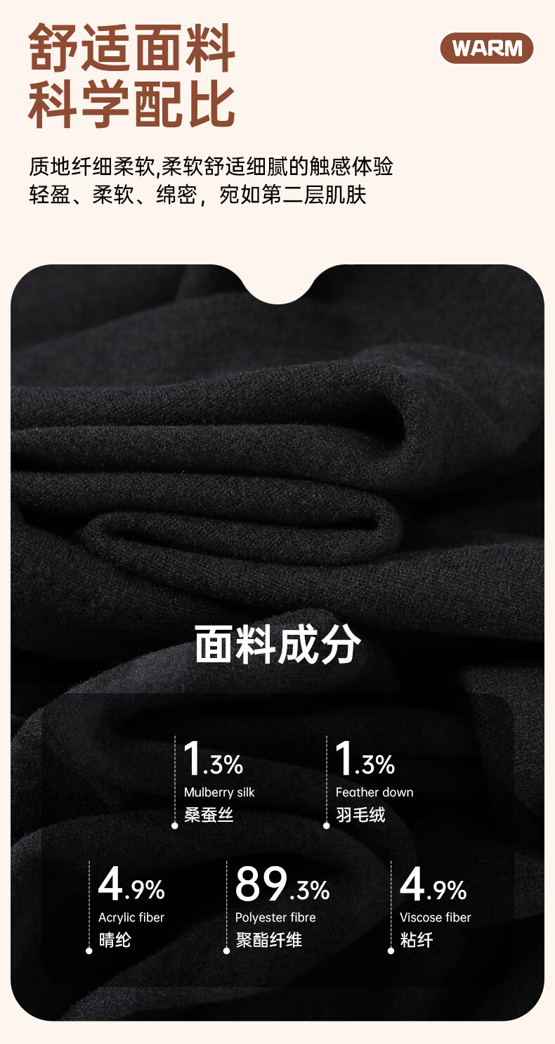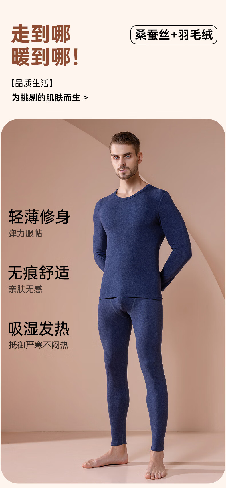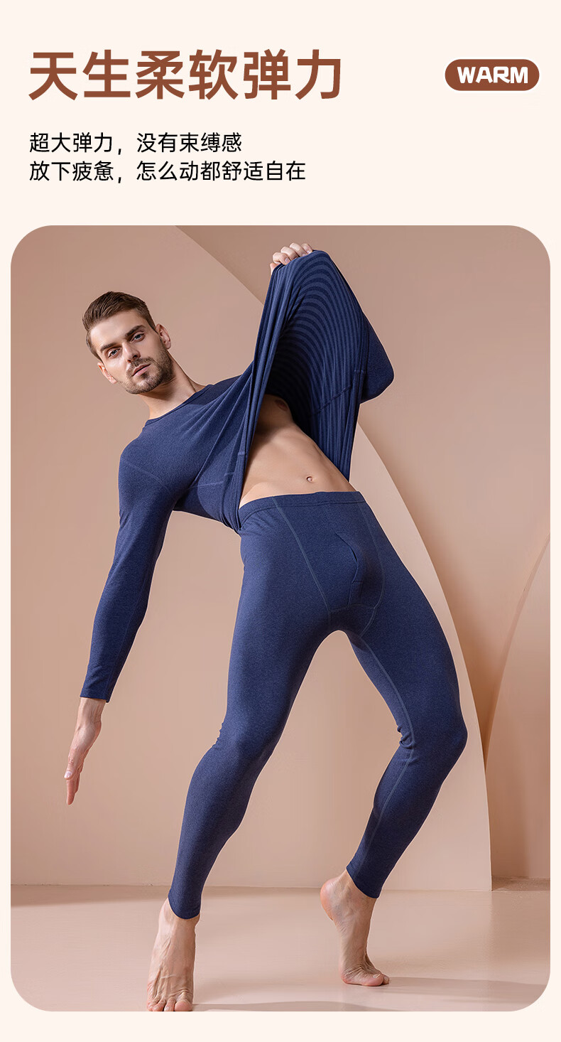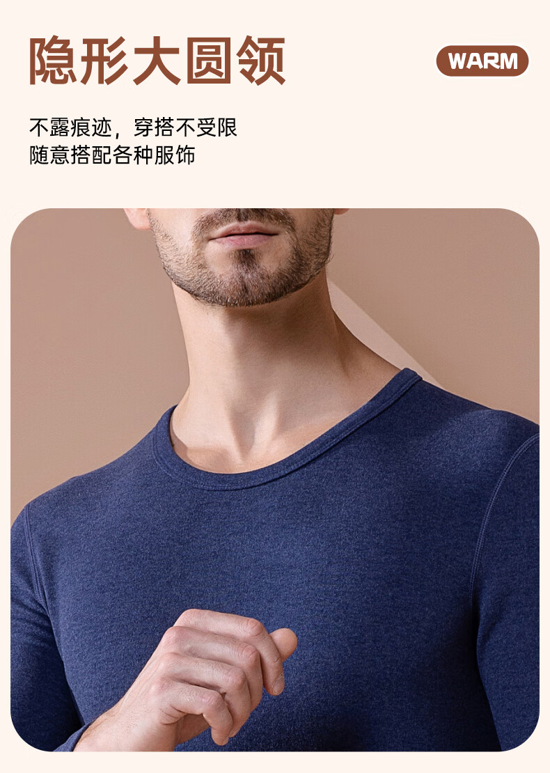 鸭鸭保暖内衣男冬季抗寒保暖圆领休闲上衣情侣款睡衣居家服圣诞礼物 咖啡棕 XL