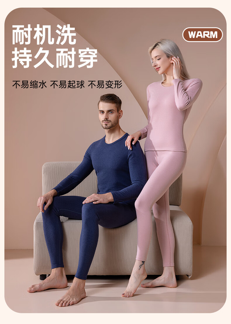 猫人(MiiOW)保暖内衣女士秋冬季加绒蓄热薄款无痕亲肤打底衣抗菌秋衣秋裤套装 炫彩肤 3XL 【建议体重160-170斤】
