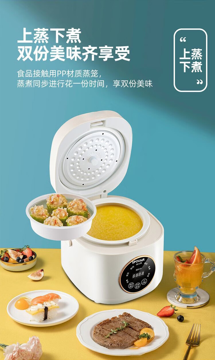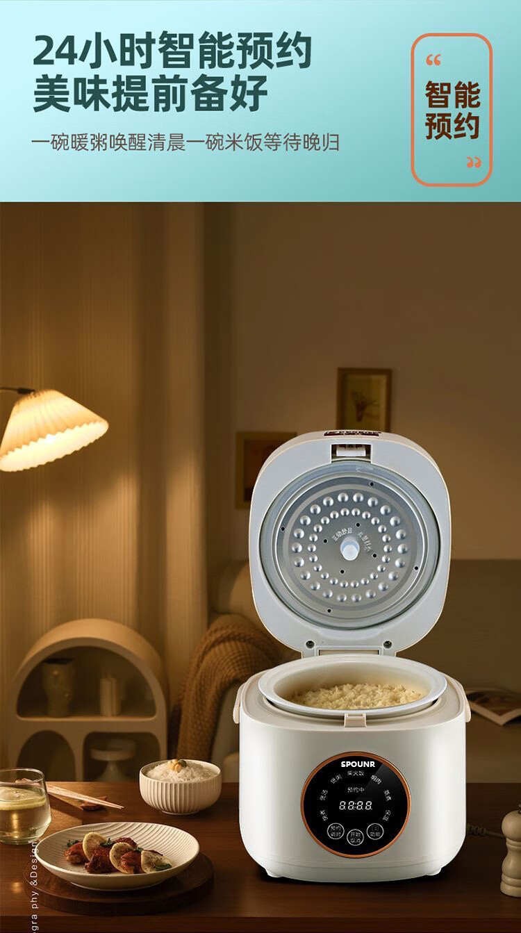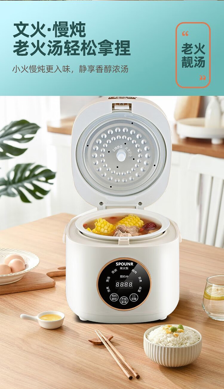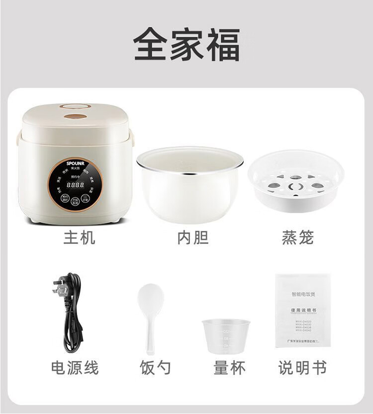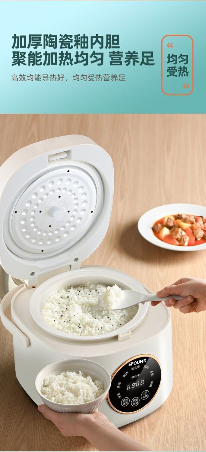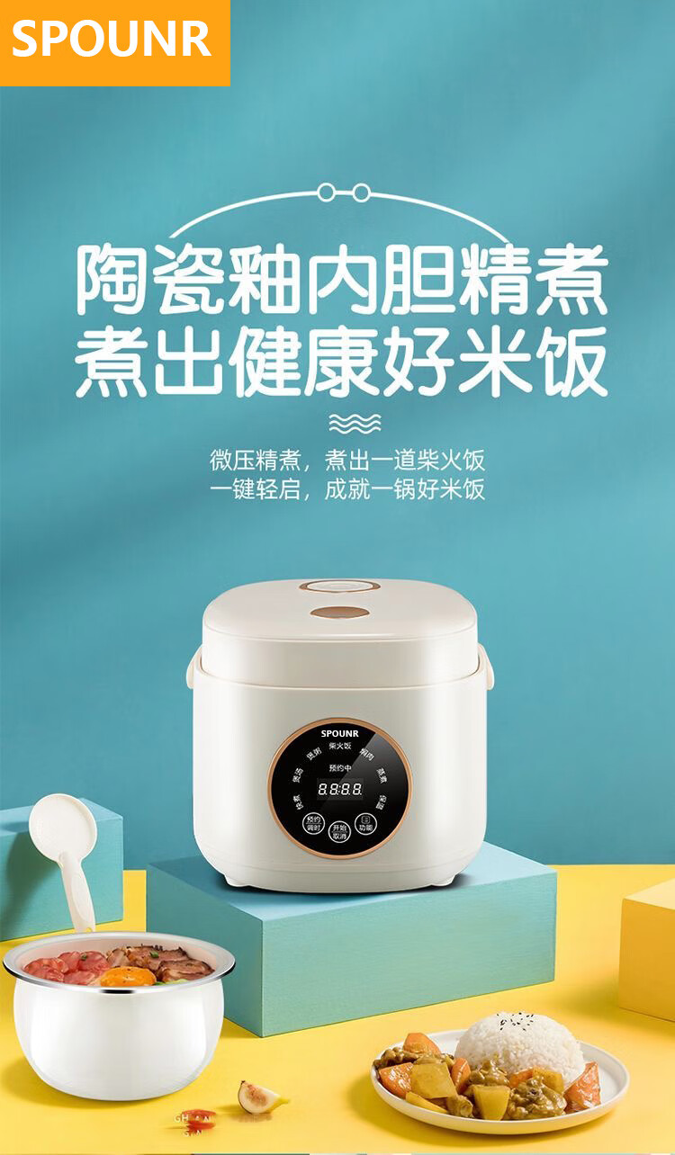 SPOUNR正品苏泊迷你电饭煲家用智能多功能1-2-3人内胆小型电饭煲陶瓷 1.8L 智能款厚釜陶瓷油胆1-2人