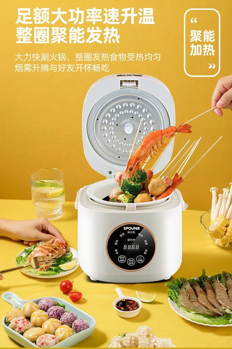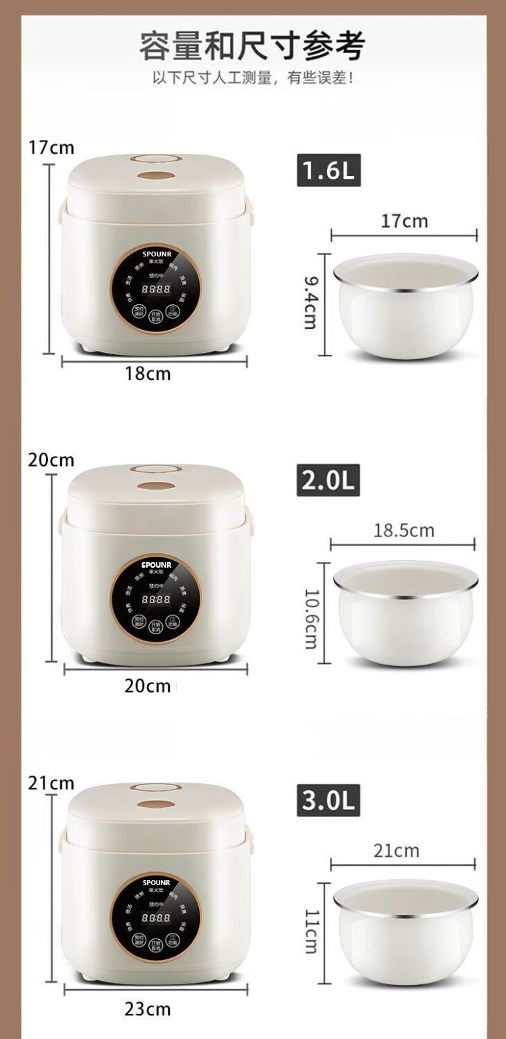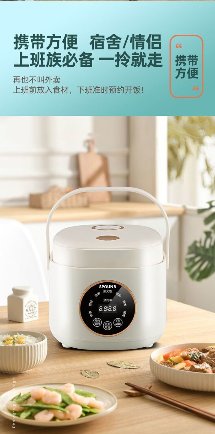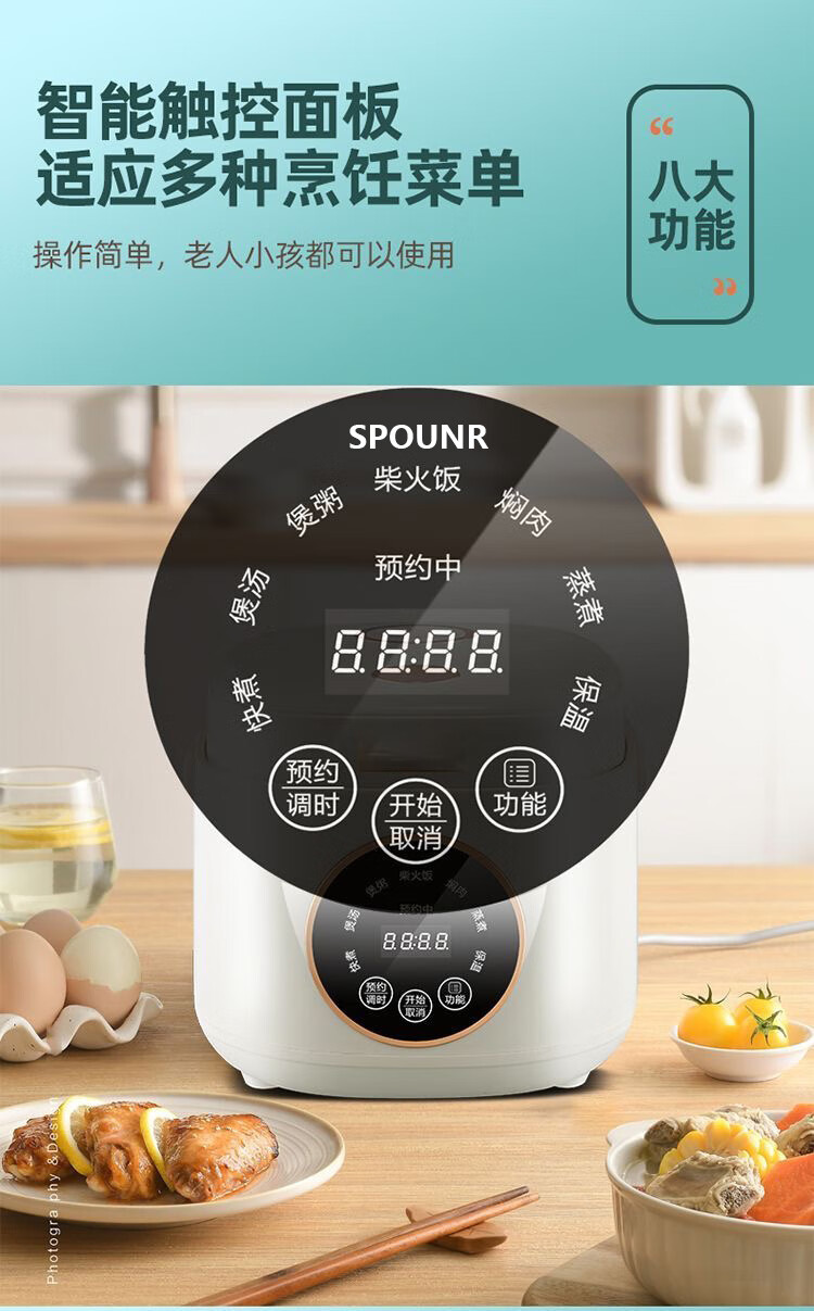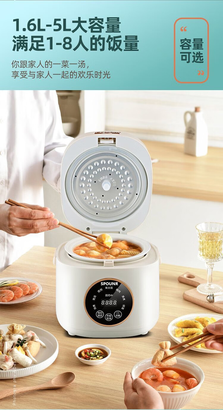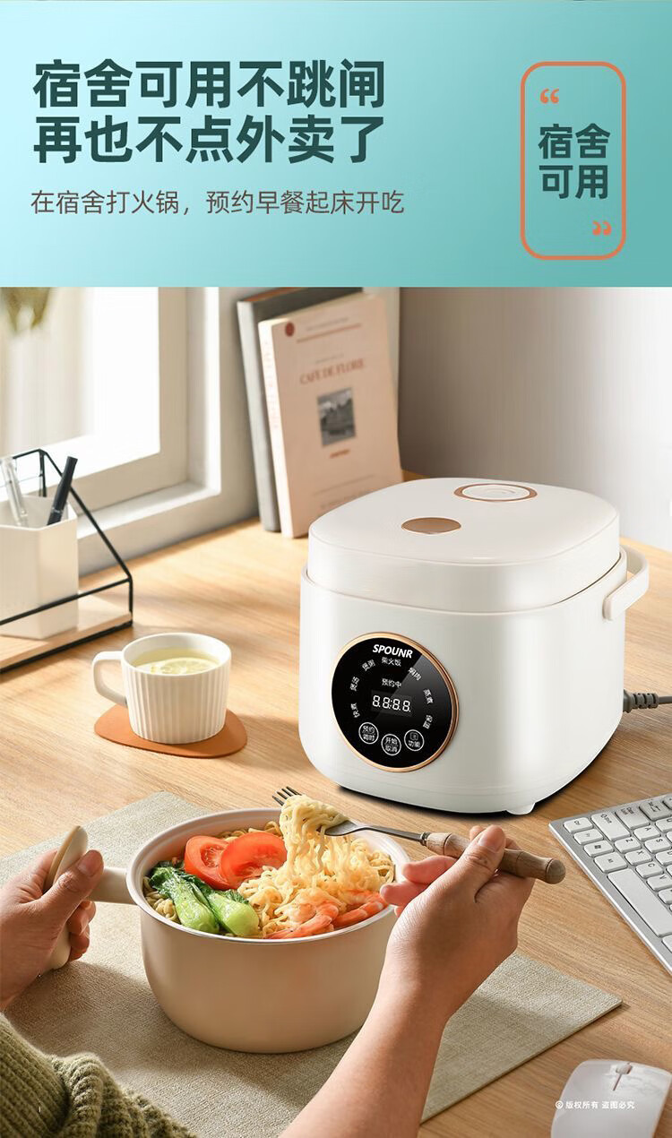 SPOUNR正品苏泊迷你电饭煲家用智能多功能1-2-3人内胆小型电饭煲陶瓷 1.8L 智能款厚釜陶瓷油胆1-2人
