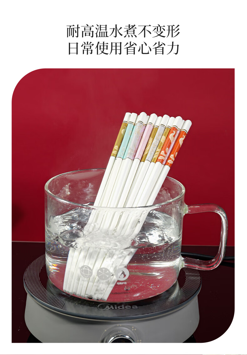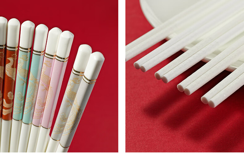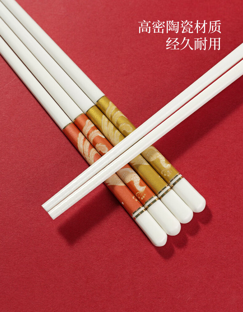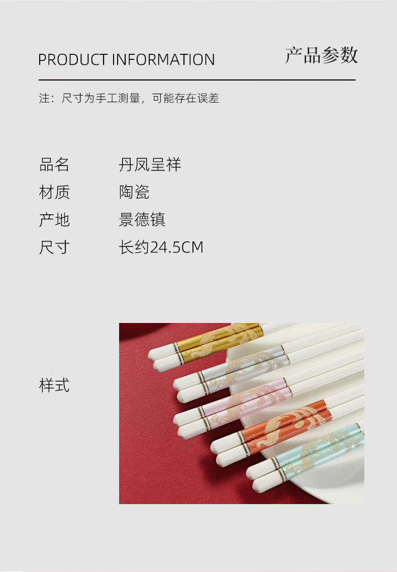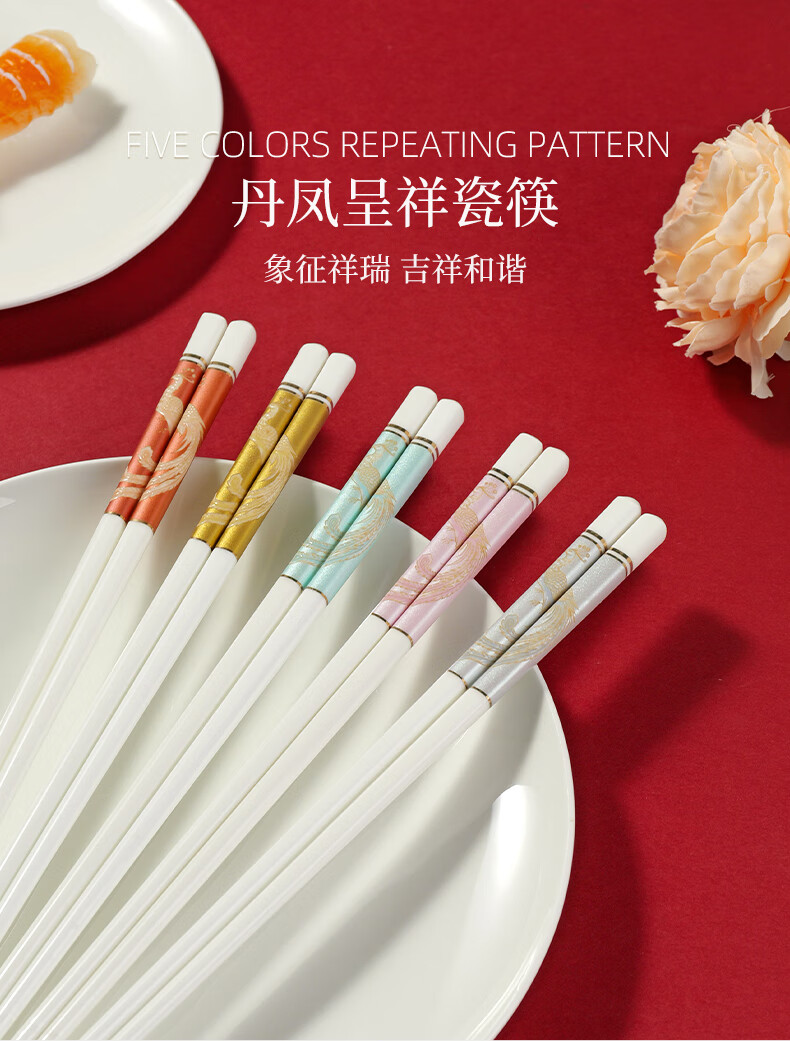 妙得景德镇陶瓷筷子耐高温不易发霉新款中式高质陶瓷筷乔迁 礼盒装:丹凤呈祥-五色混装 筷子10双(送饭勺)
