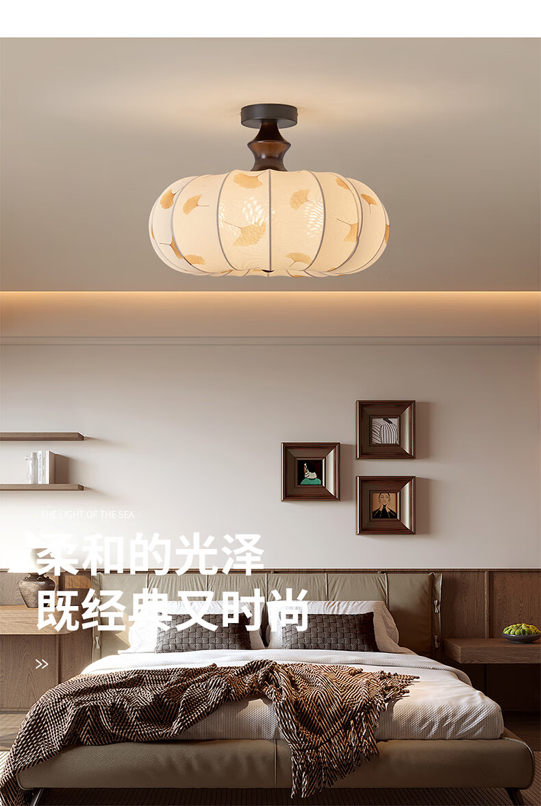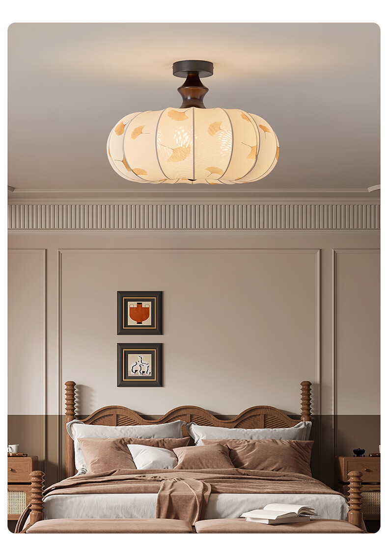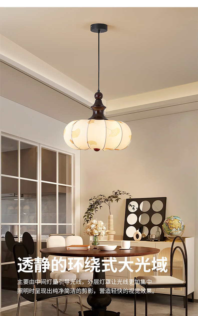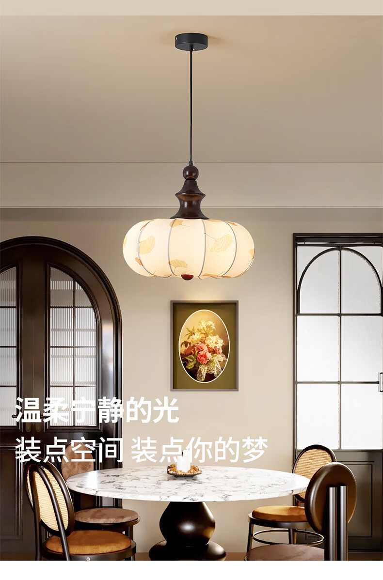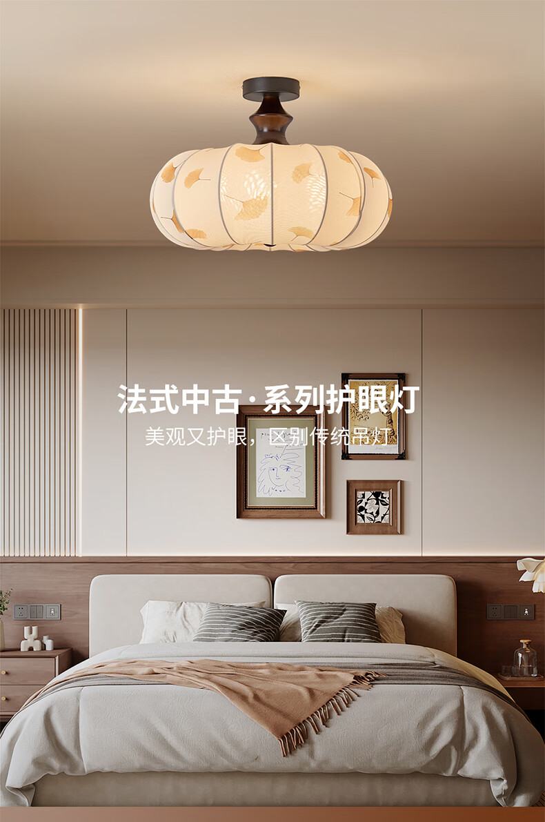 源氏木语法式中古风主卧室吸顶灯印花餐厅客厅吊灯南瓜布艺书房间灯具 40CM吊灯黑全光谱三色变光