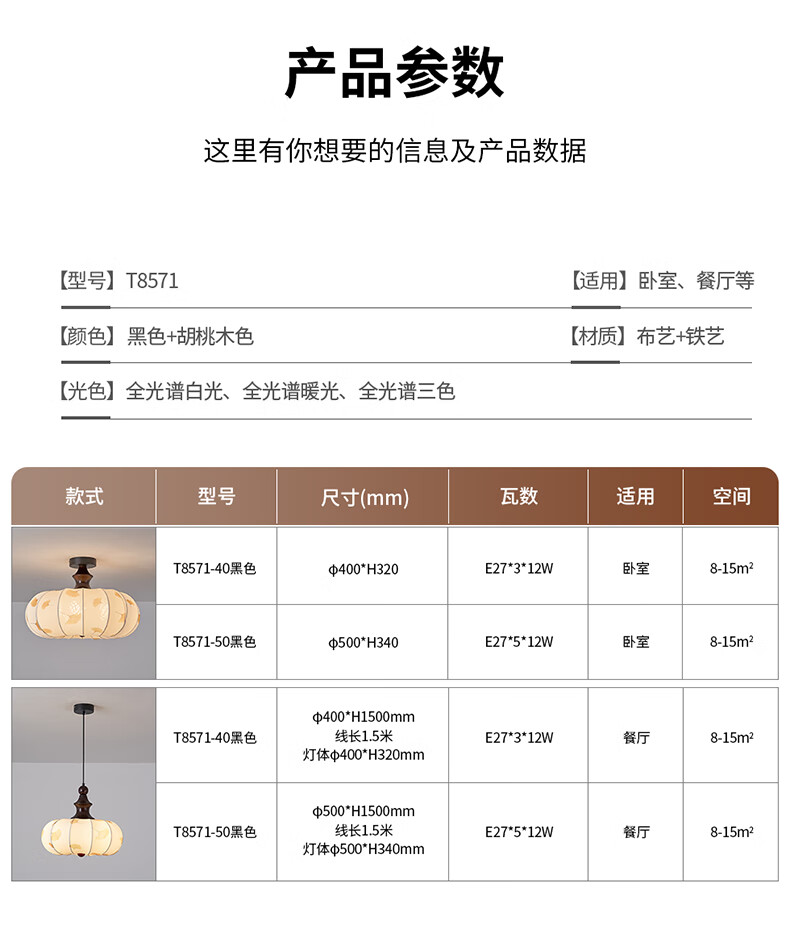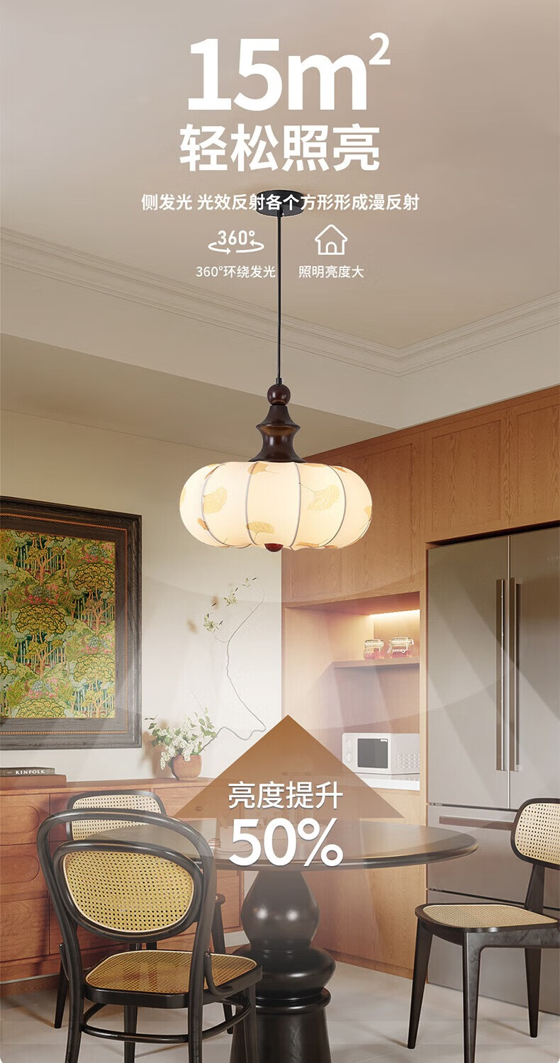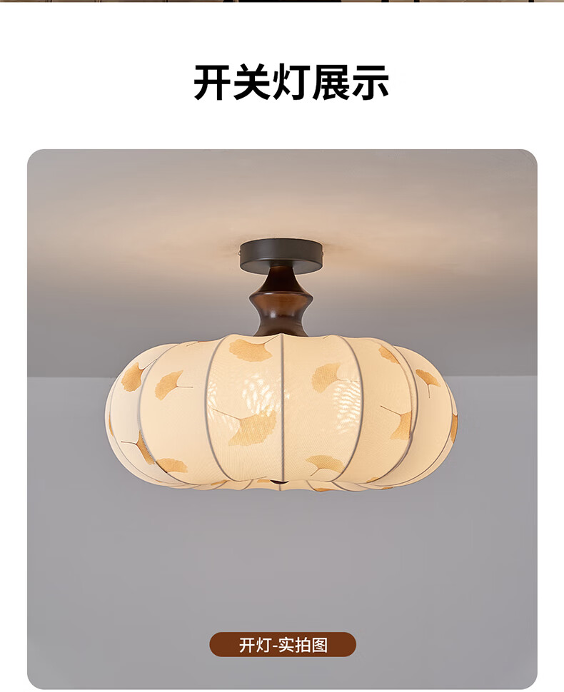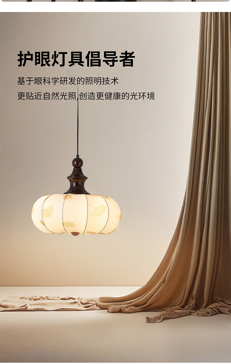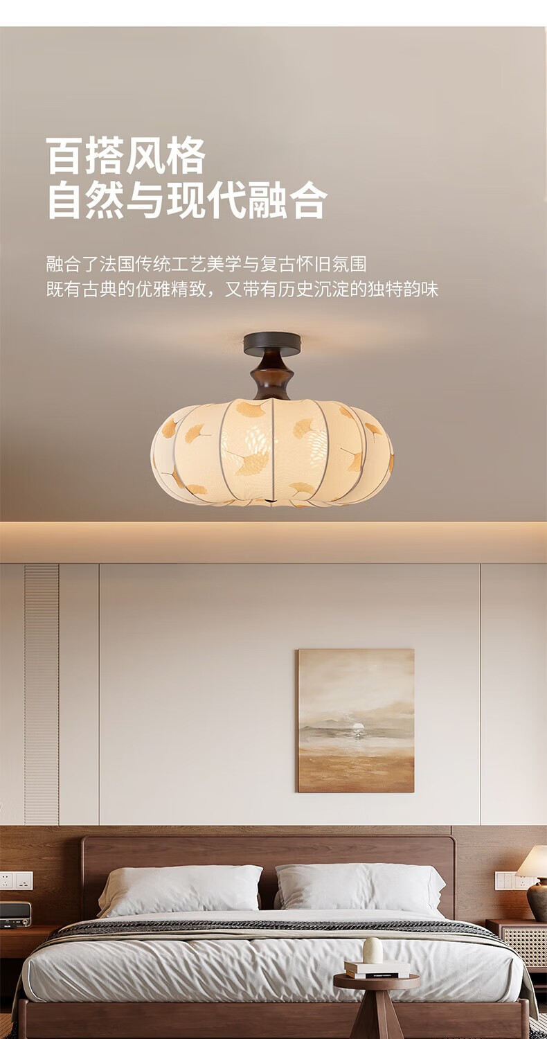 源氏木语法式中古风主卧室吸顶灯印花餐厅客厅吊灯南瓜布艺书房间灯具 40CM吊灯黑全光谱三色变光