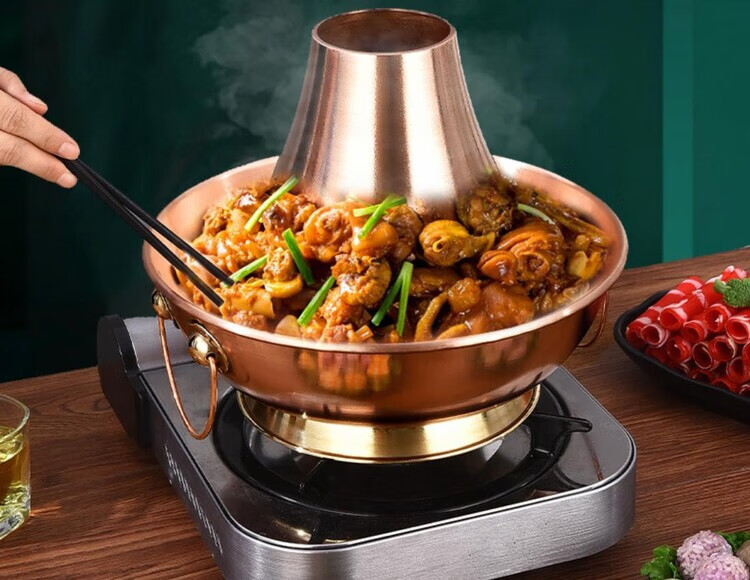 咏夏铜锅火锅鸡纯铜专用燃气卡式炉铜火锅老式煤气干锅牛蛙紫铜锅商用 30cm特厚纯铜/无盖【卡式炉燃气】 1英寸