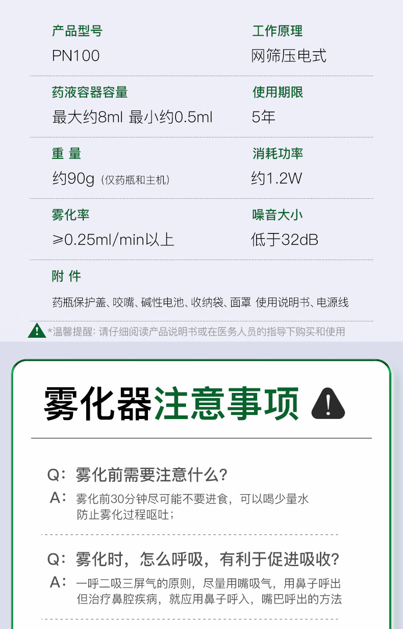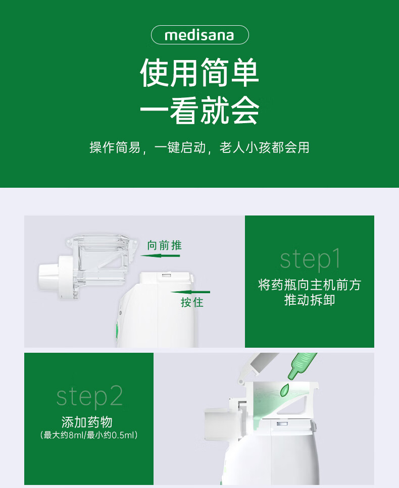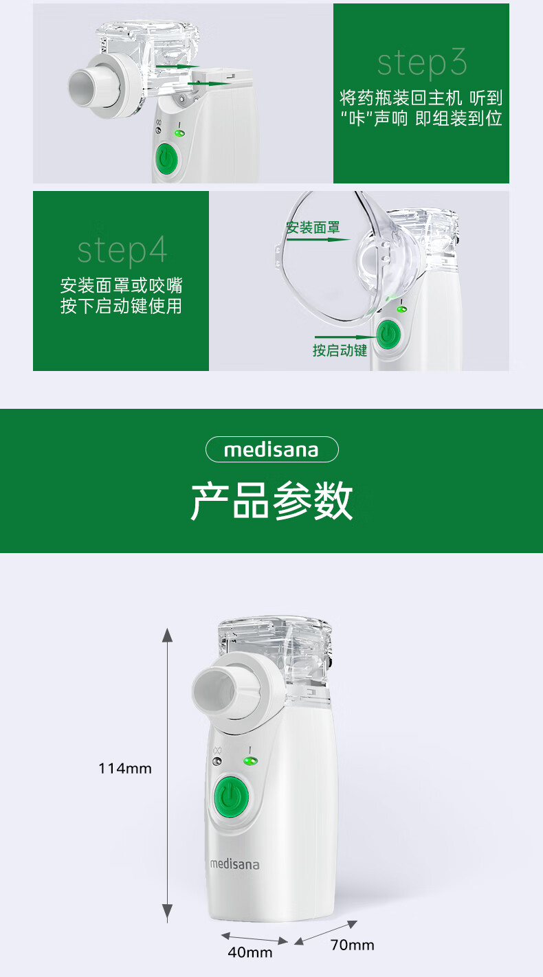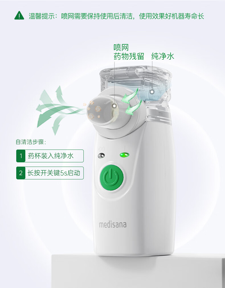 MEDISANA德国手持雾化器家用婴幼儿童轻音医用便携式吸入雾化机甲流PN100