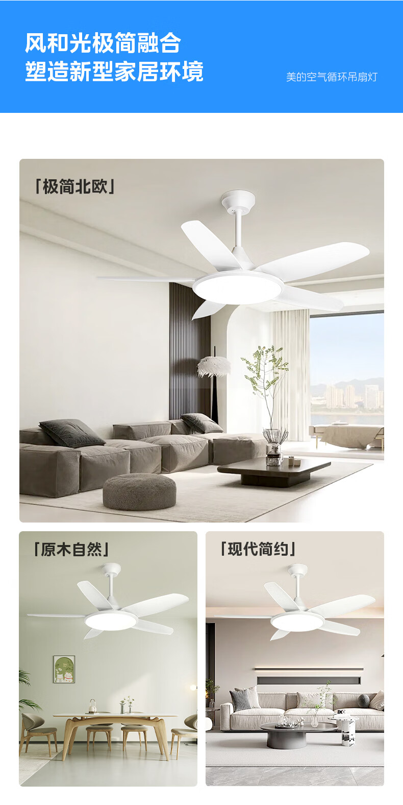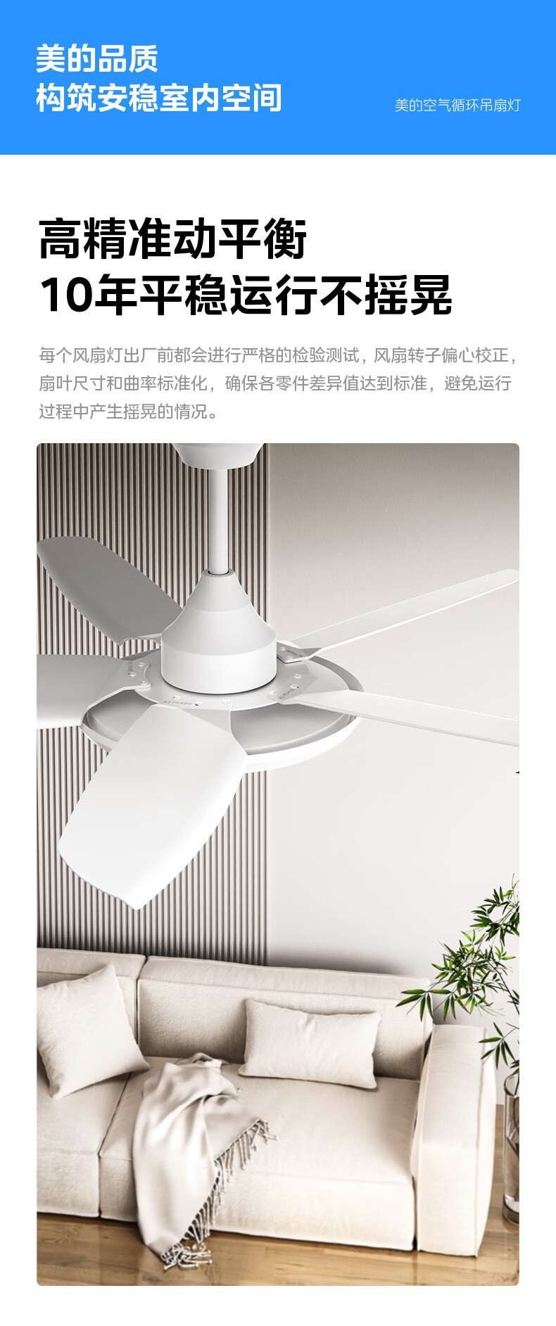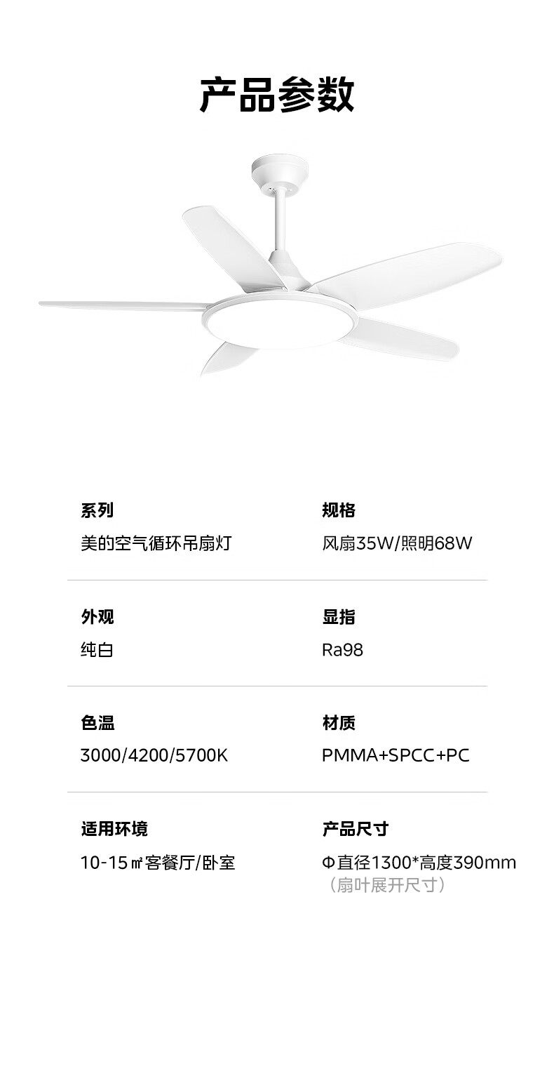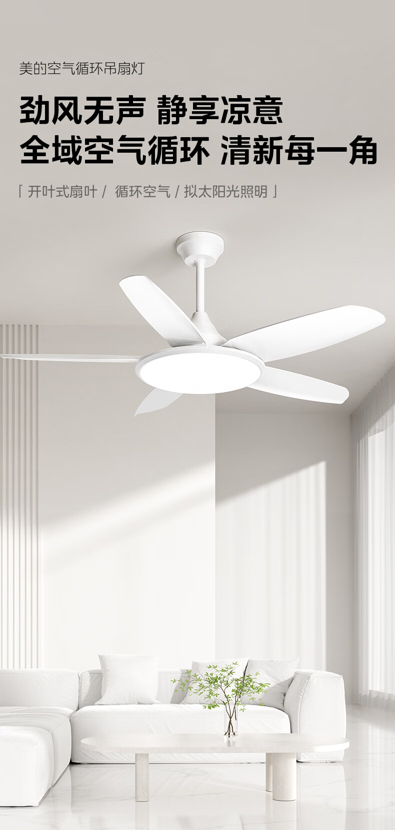 美的(Midea)风扇灯餐厅吊扇灯led卧室52寸开叶扇全光谱五叶扇熟睡风包安装
