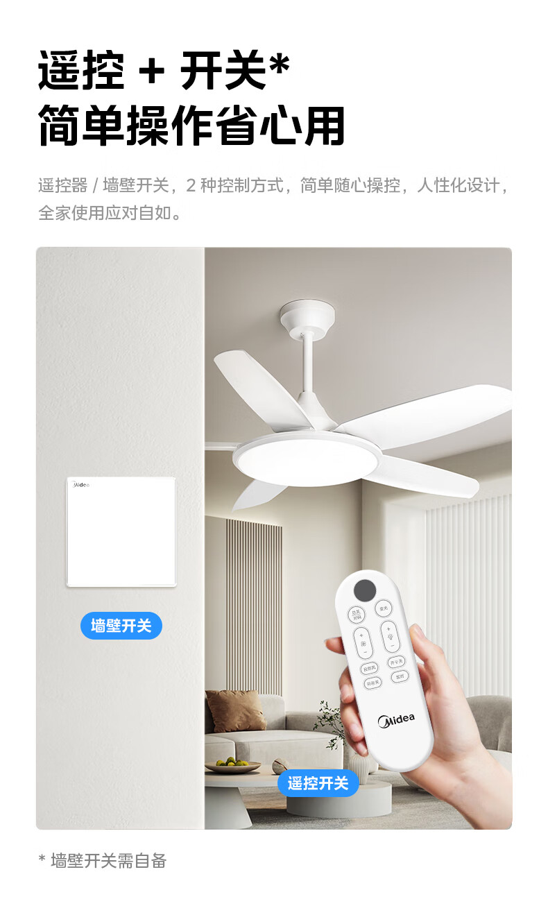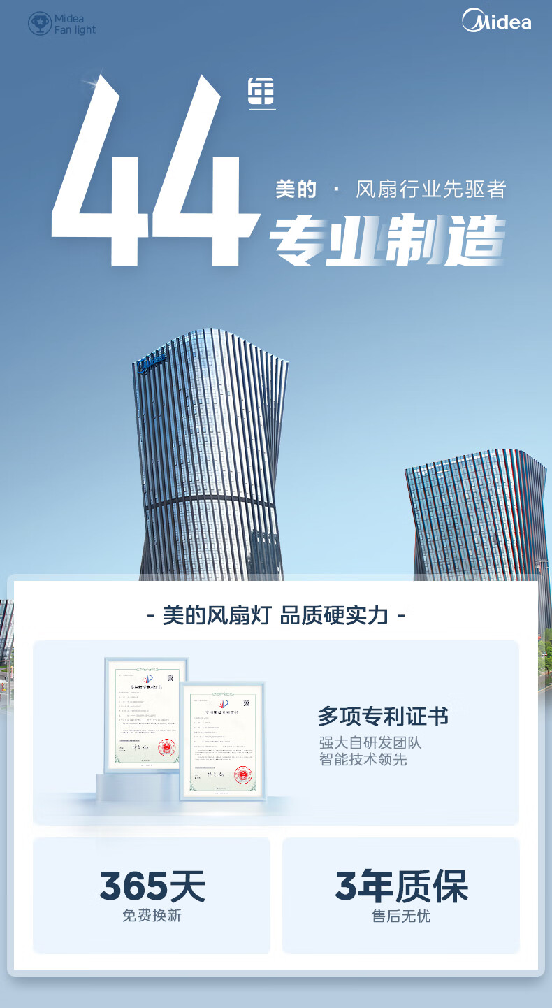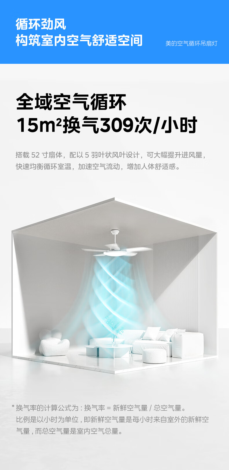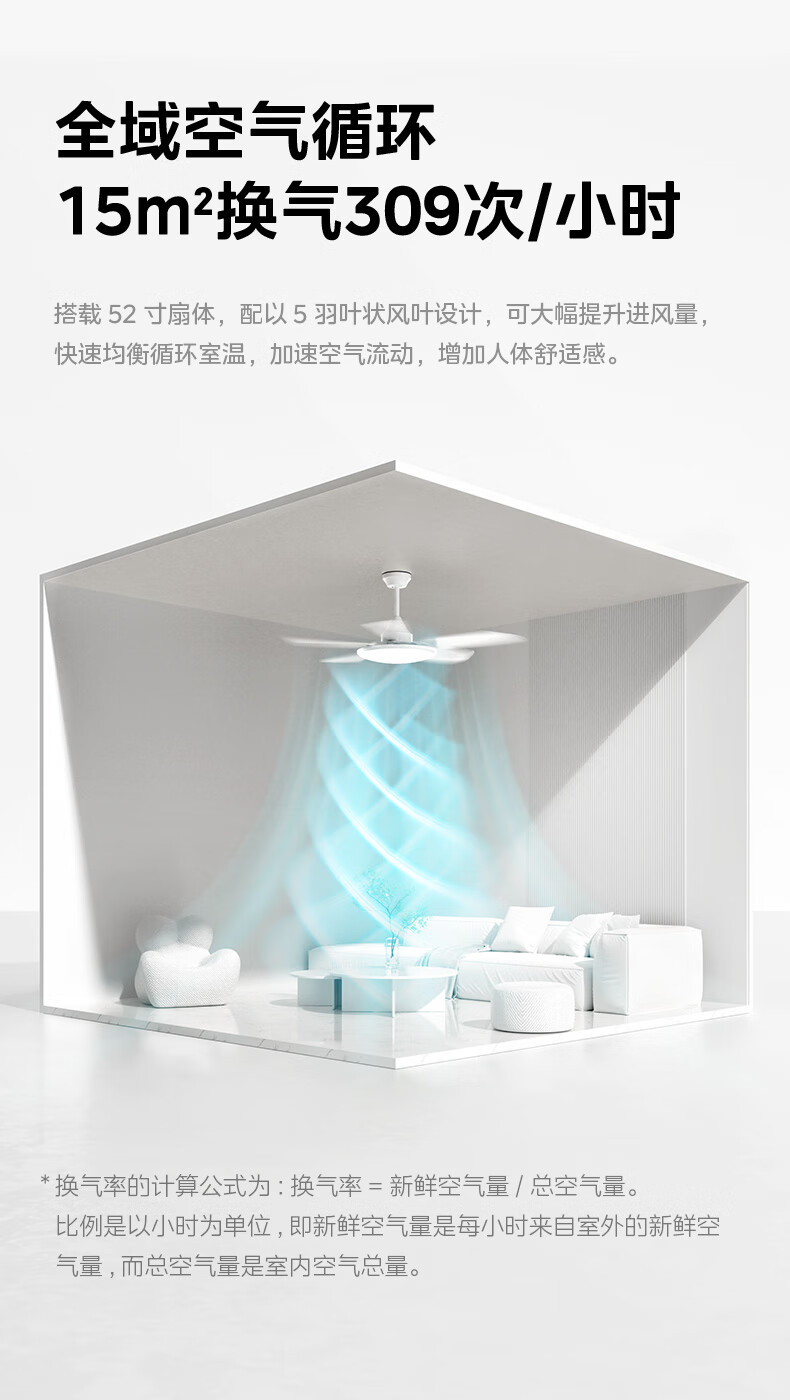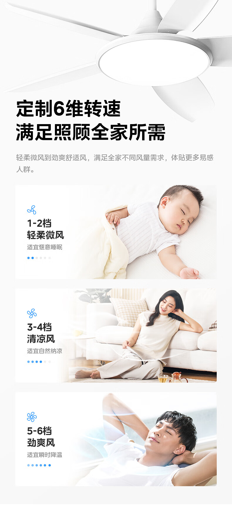 美的(Midea)风扇灯餐厅吊扇灯led卧室52寸开叶扇全光谱五叶扇熟睡风包安装