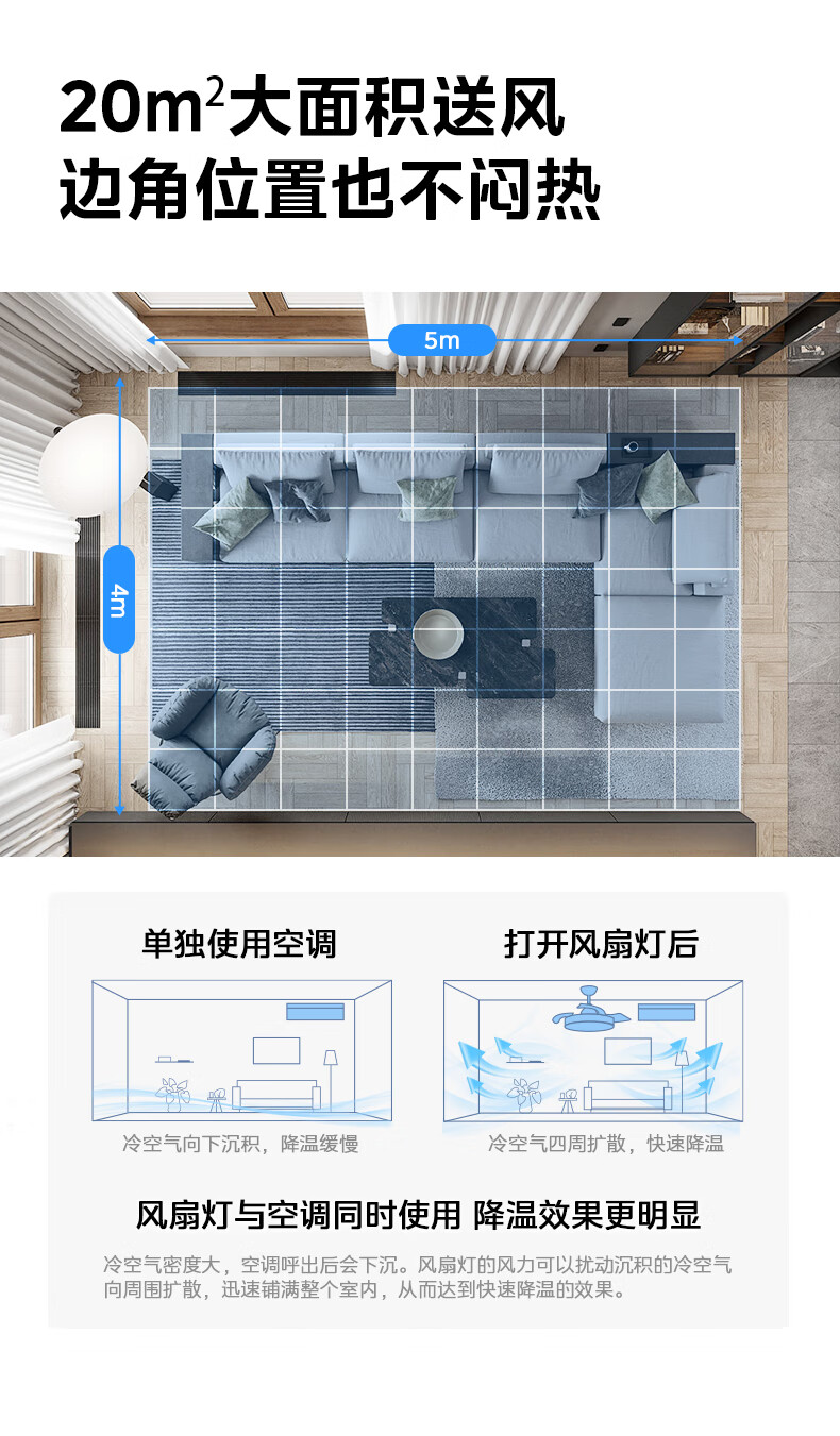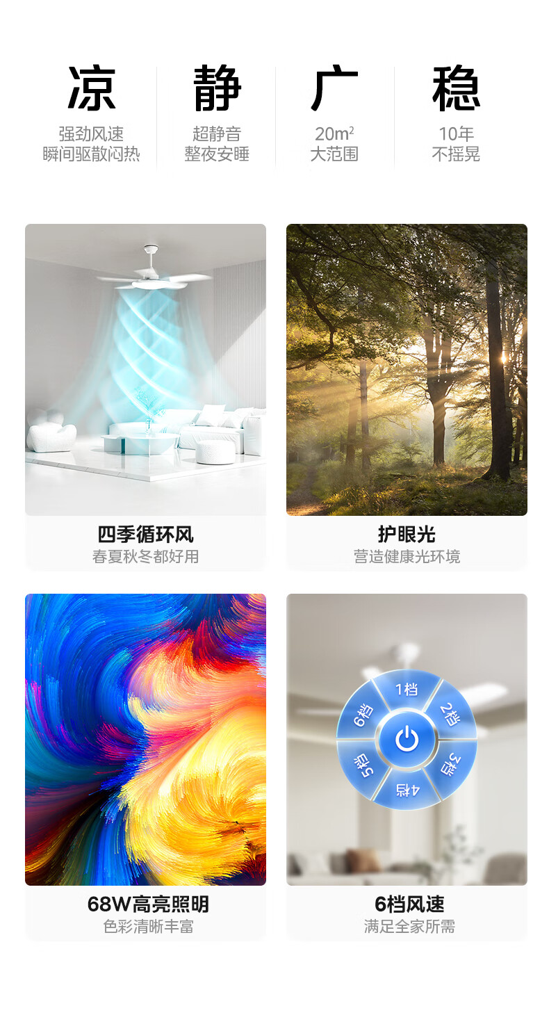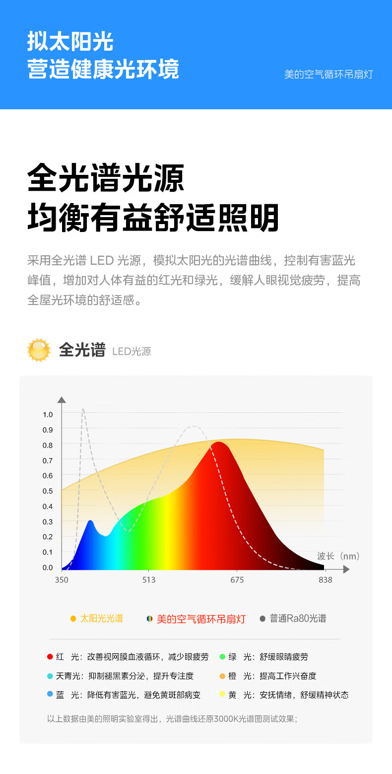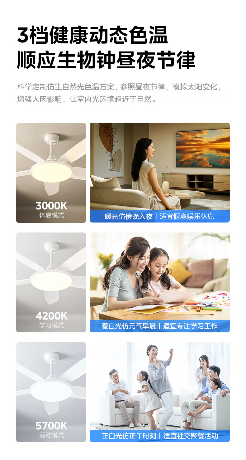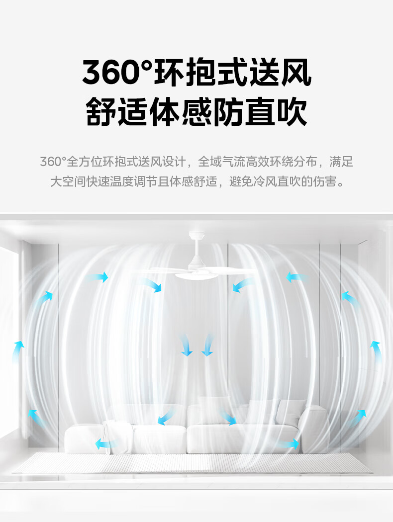 美的(Midea)风扇灯餐厅吊扇灯led卧室52寸开叶扇全光谱五叶扇熟睡风包安装