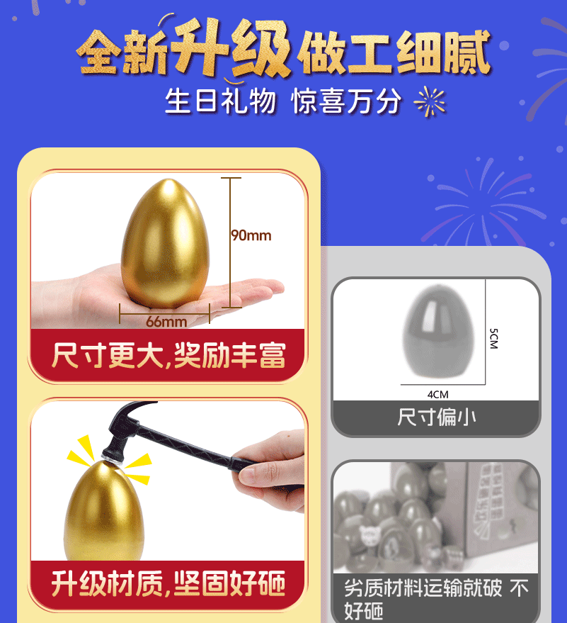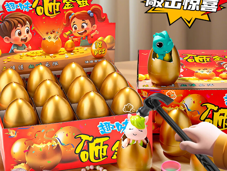 Holy STONE砸金蛋洞洞乐彩蛋儿童玩具盲盒小学生3-6岁男女孩5-10岁生日礼物 男孩玩具金蛋【12颗】+锤子礼盒 二3年级玩具幼儿园小礼物圣诞礼物儿童节