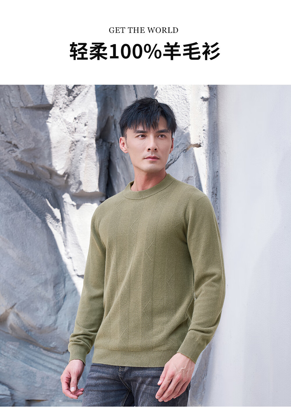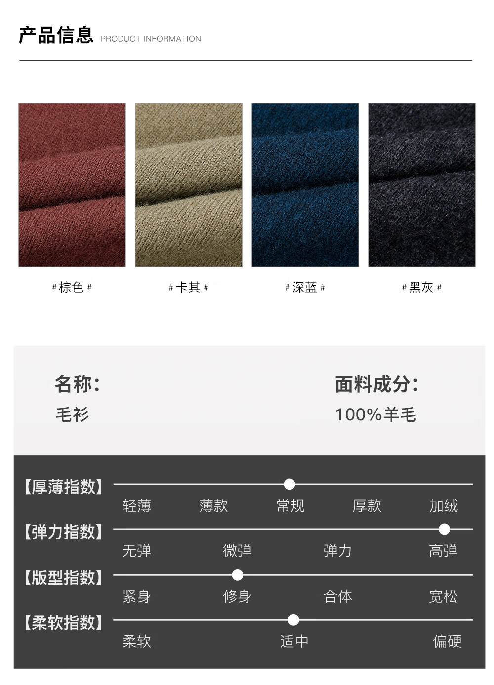 才子(TRIES)100%纯羊毛衫男士秋冬加厚半高领毛衣柔软亲肤保暖纯色打底针织衫 黑灰色 L 48 (170/88A)