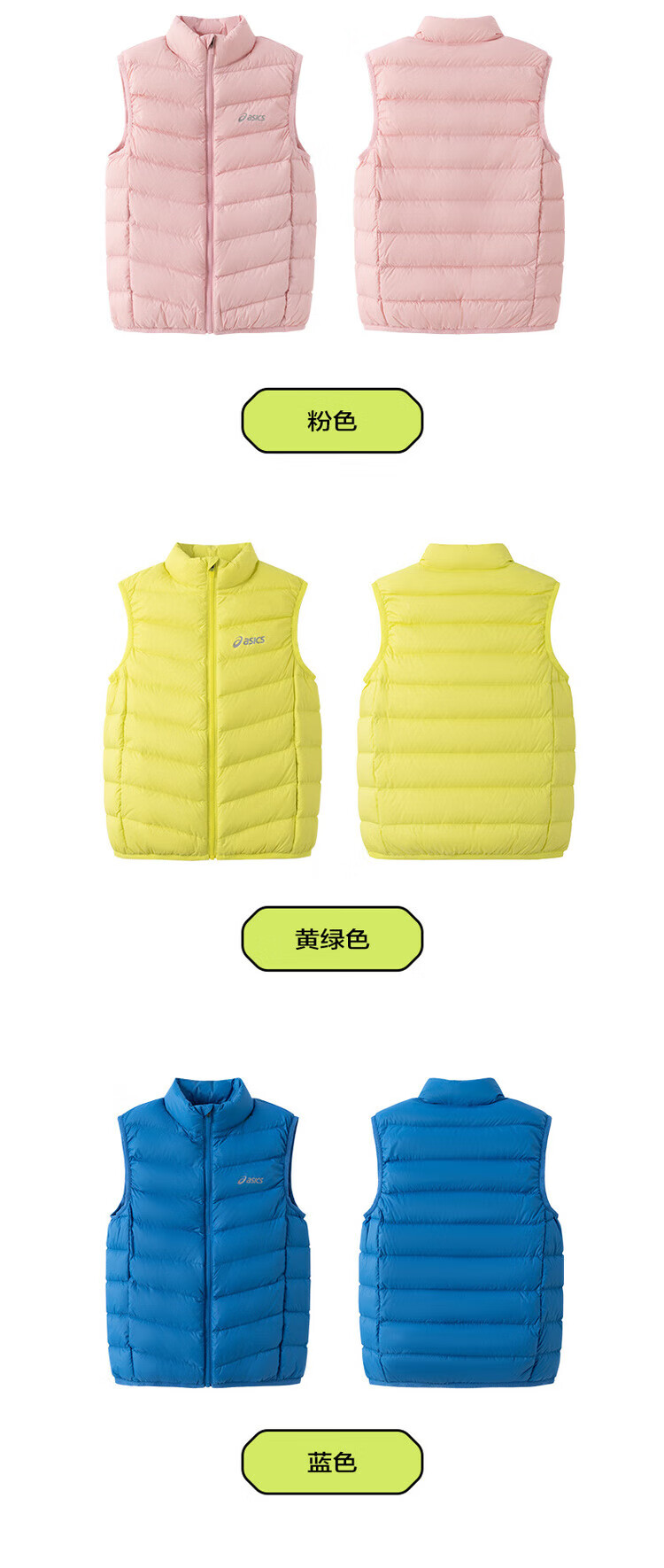 亚瑟士亚瑟士童装冬季新款男女儿童三防科技羽绒马甲 黄绿色 清洁度1000-白鸭绒 170 cm 充绒量47g