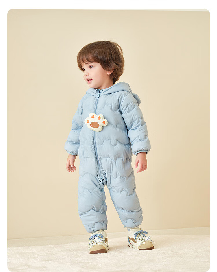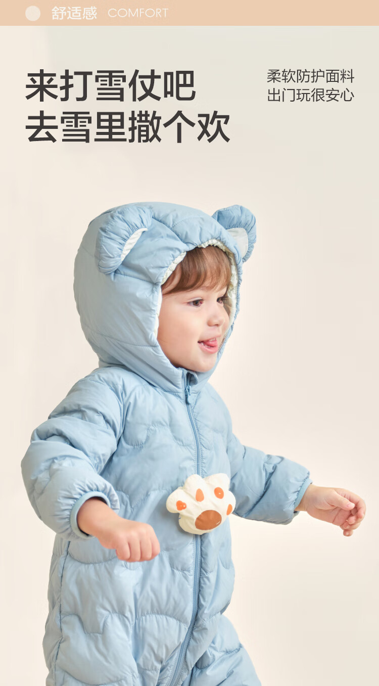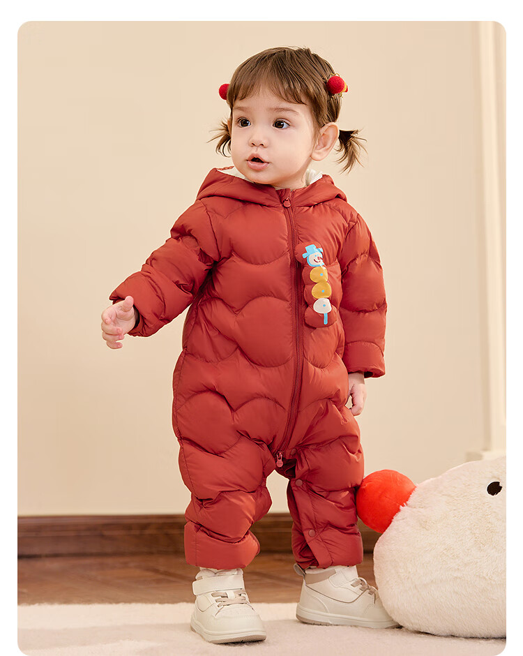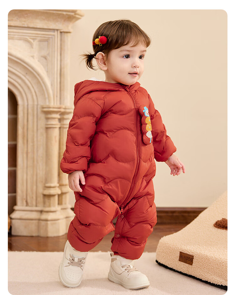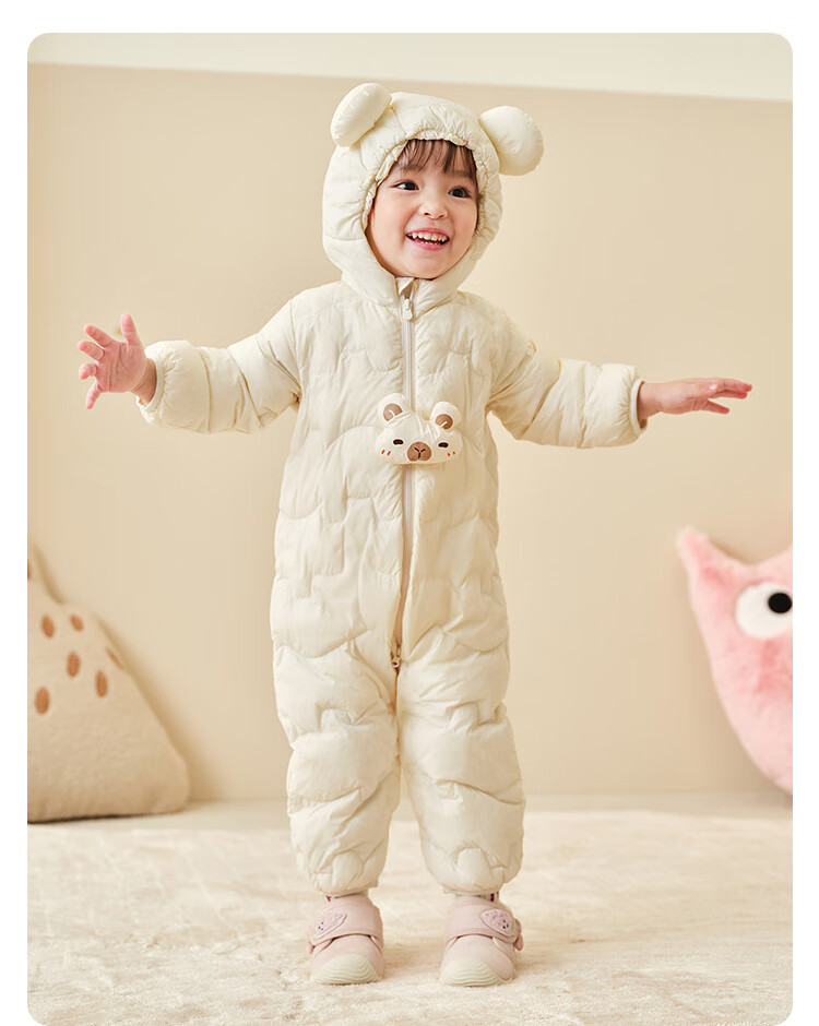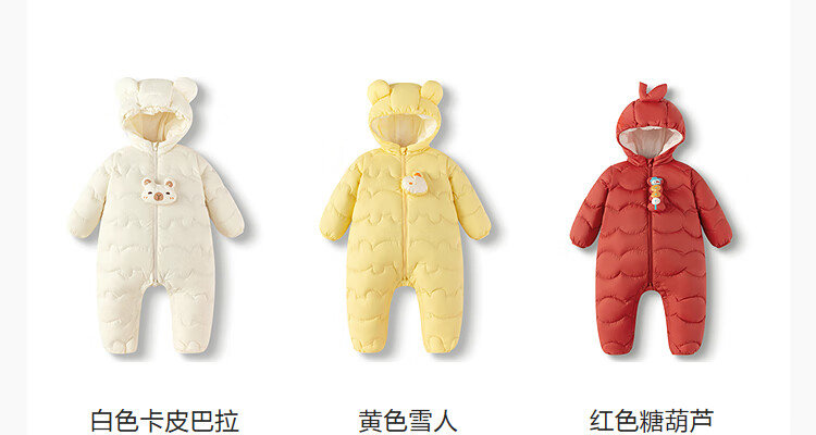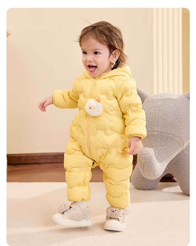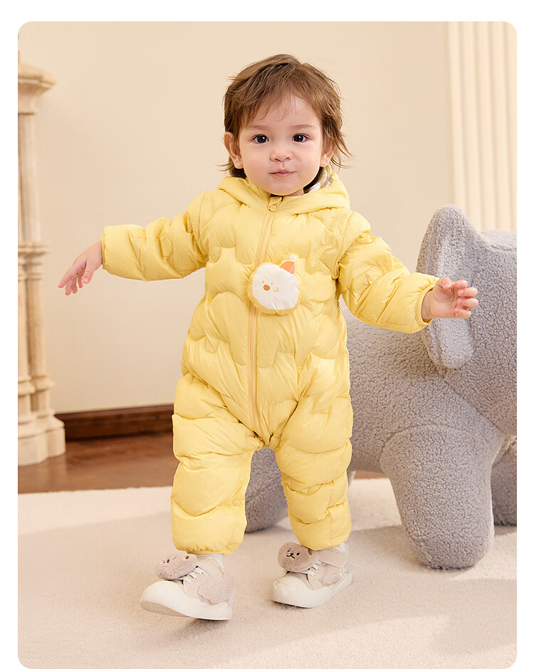 巴拉巴拉童装婴儿连体羽绒服轻薄羽绒服宝宝衣服2025冬装抱衣爬服男童女童 黄色雪人-白鸭绒 90 cm-充绒量47g