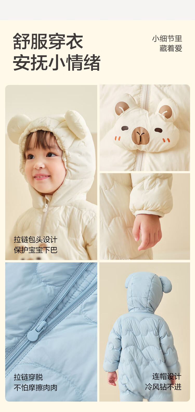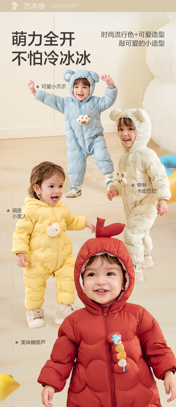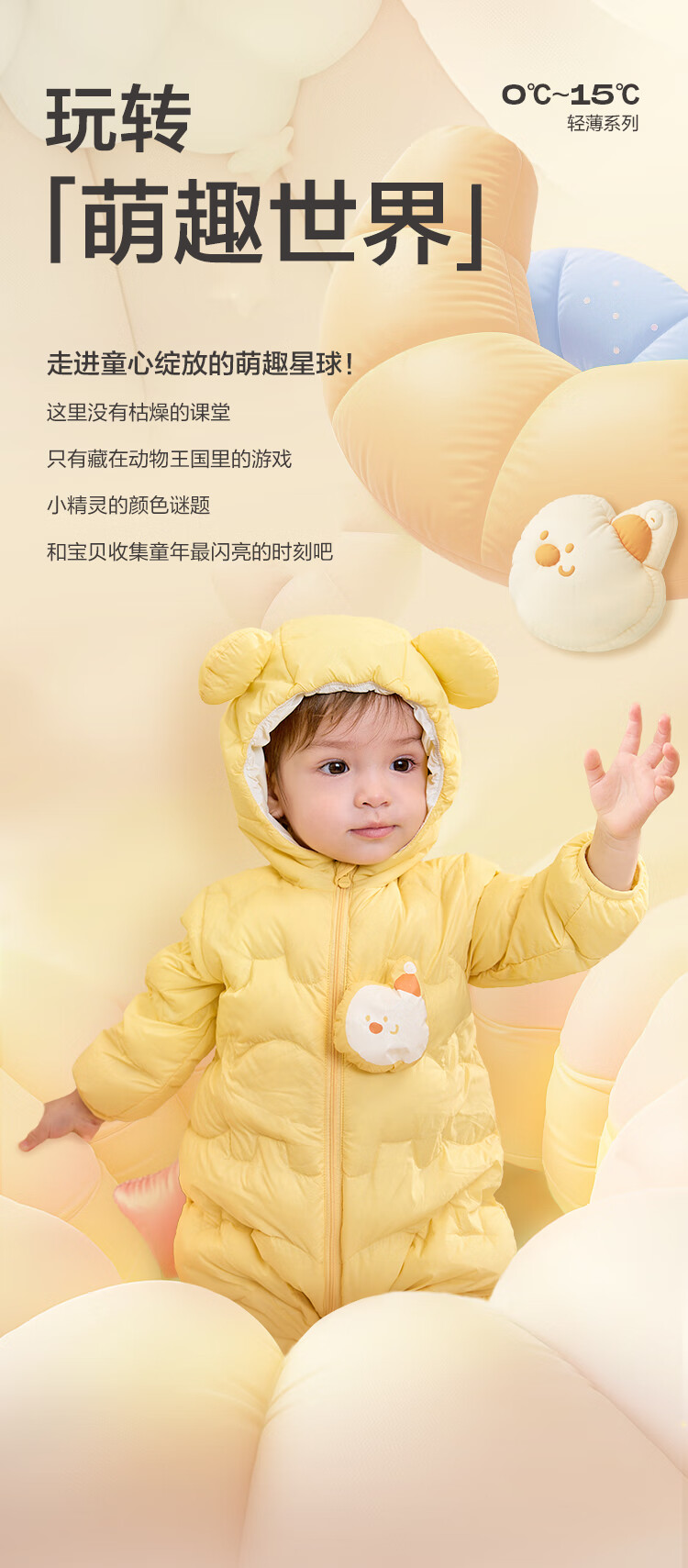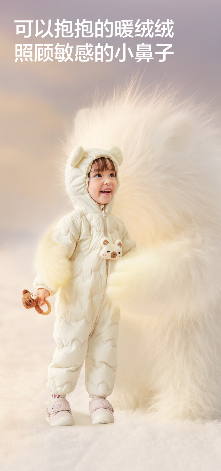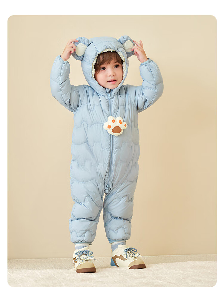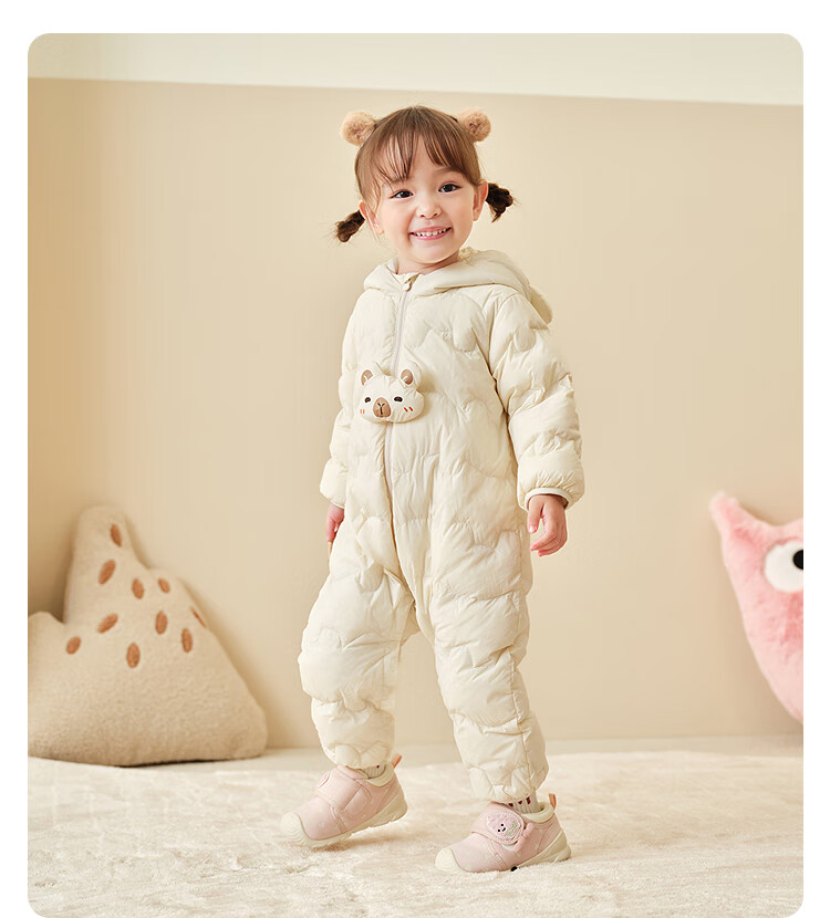 巴拉巴拉童装婴儿连体羽绒服轻薄羽绒服宝宝衣服2025冬装抱衣爬服男童女童 黄色雪人-白鸭绒 90 cm-充绒量47g