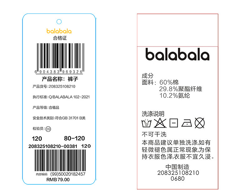 巴拉巴拉balaOne童装儿童长裤宝宝打底裤男童女童裤子2025秋装新款可外穿 蓝白色调00381 120