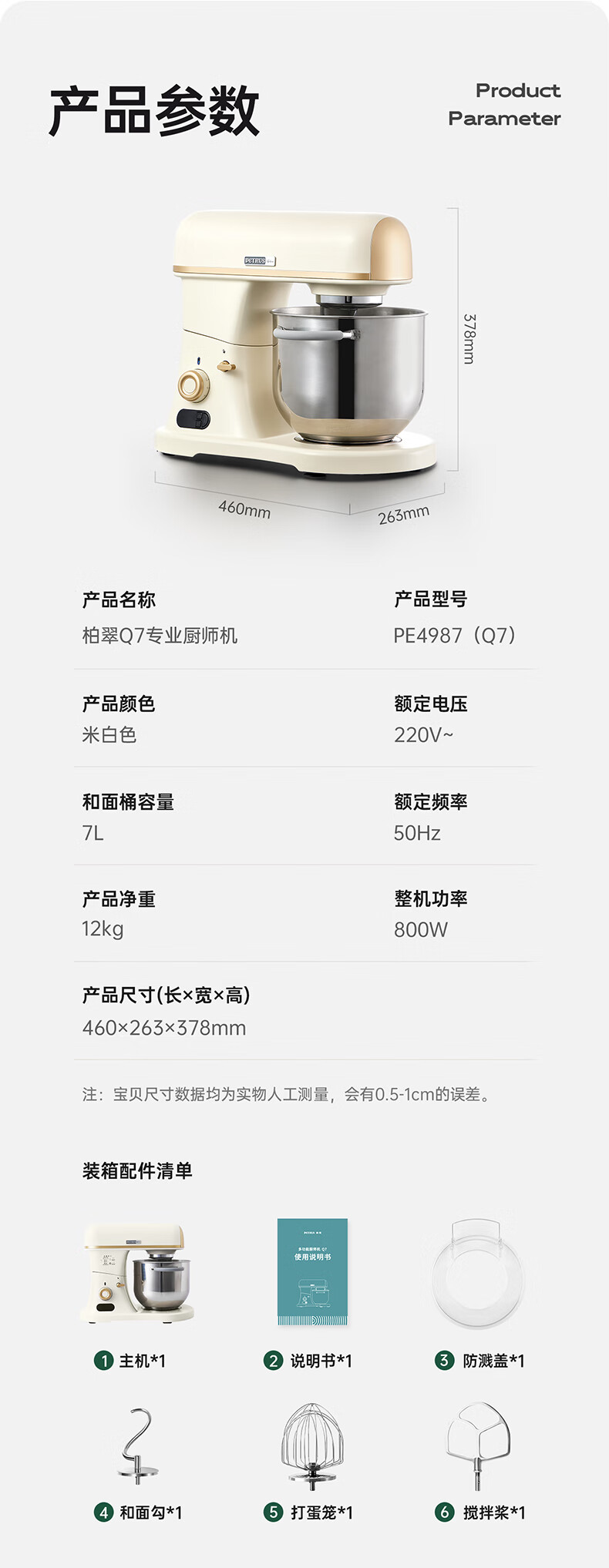 柏翠( petrus)【政府补贴】厨师机和面机 直流家用小型全自动和面揉面打蛋机Q7/PE4987