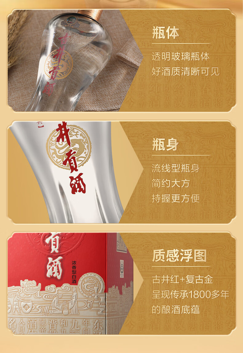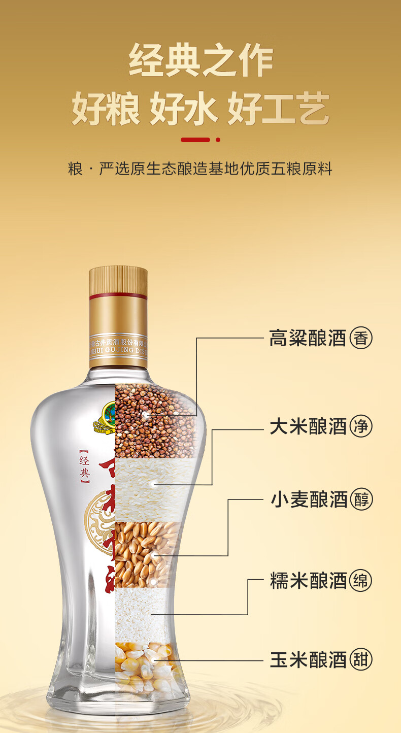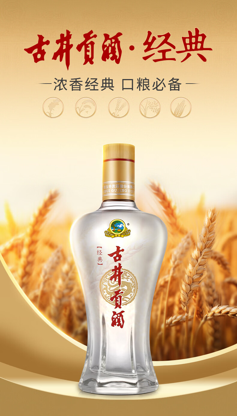 古井贡酒 经典 浓香型白酒 45度 500ml*6瓶 整箱装 口粮酒(无礼品袋)