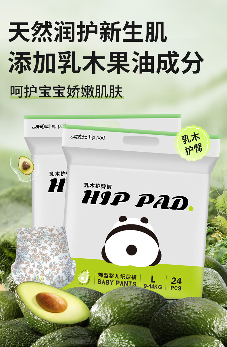 祺安熊猫乳木果油婴儿护臀纸尿裤L码52片16-22斤超薄透气成长裤箱装