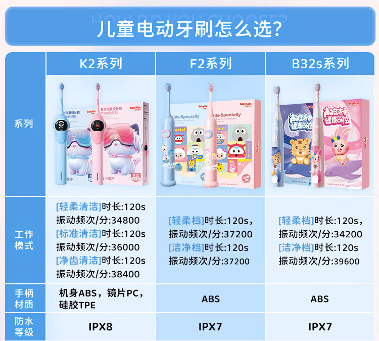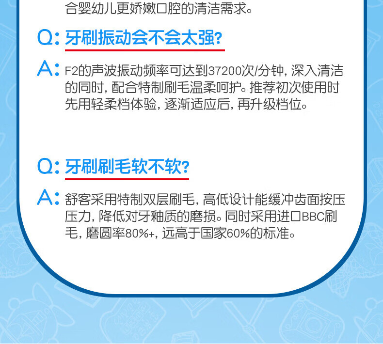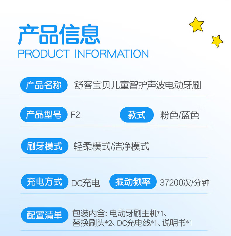舒客电动牙刷舒克声波震动含氟刷丝专业防蛀软毛护龈双重模式F2蓝(适用3-12岁) 生日儿童节礼物