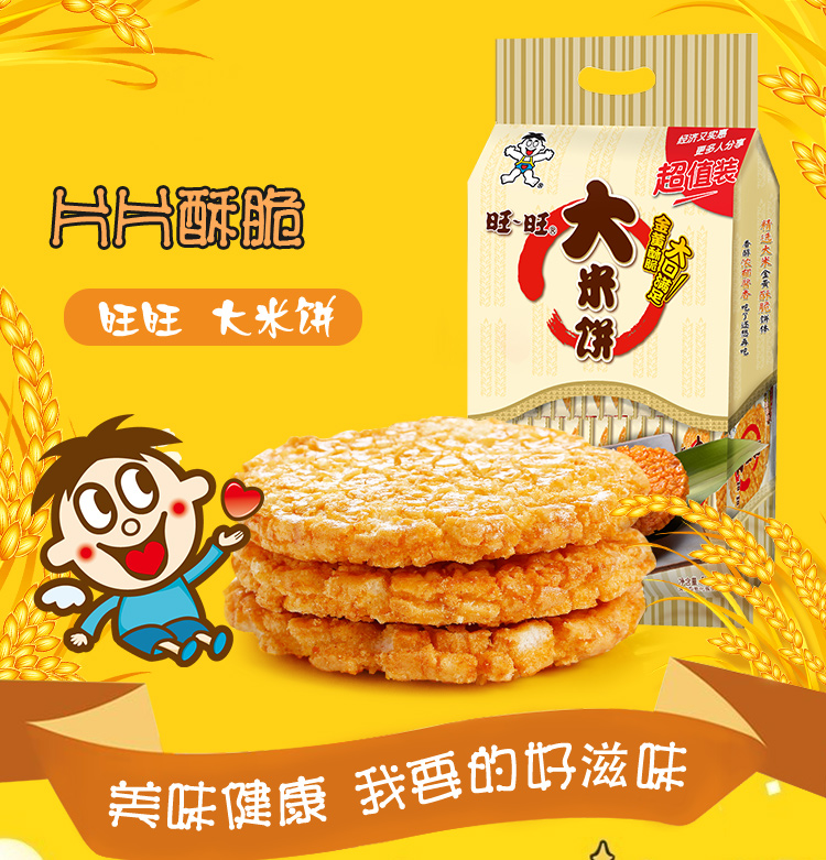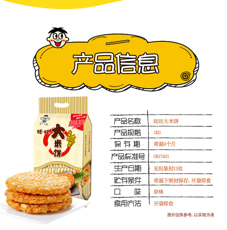 旺旺 大米饼 原味 1000g 家庭装 休闲膨化食品饼干糕点零食