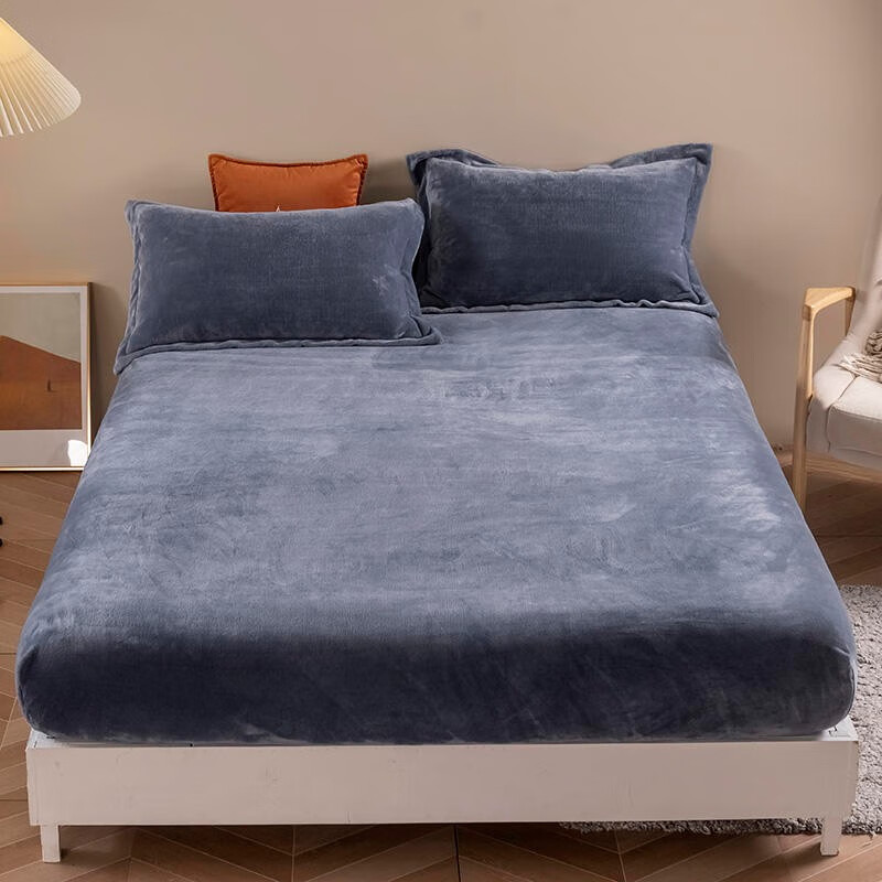麦琪娜 加厚牛奶绒床笠单件席梦思床垫保护套冬季珊瑚绒保暖床套罩床笠 深灰 150*200cm
