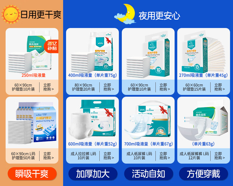 海氏海诺医用成人护理垫60*90cm*10片老人用一次性隔尿垫 婴儿产妇产褥垫