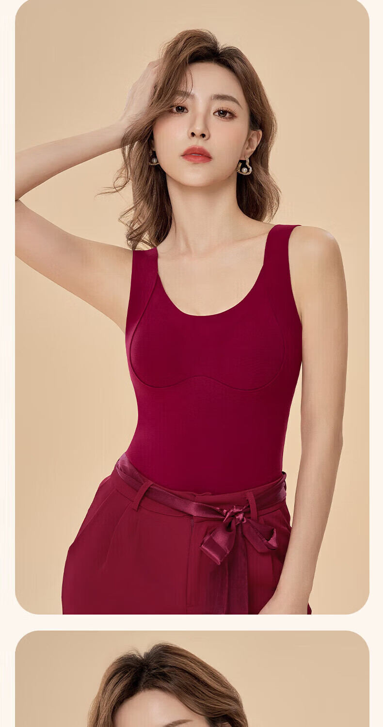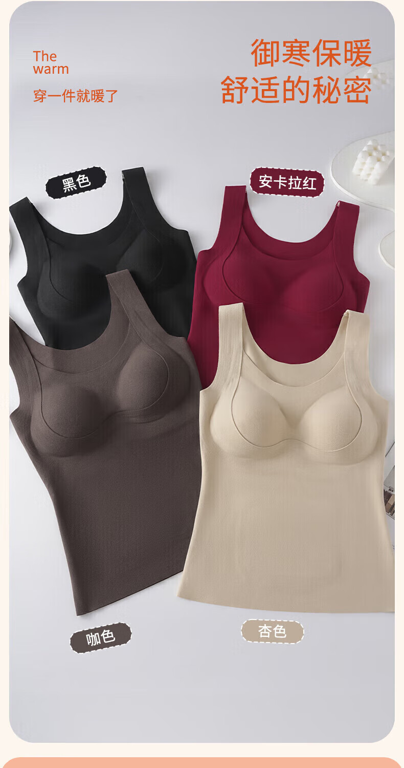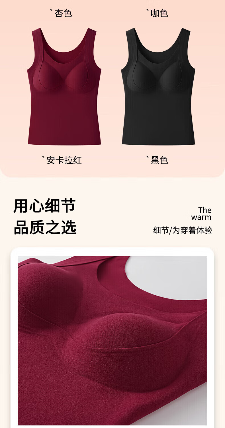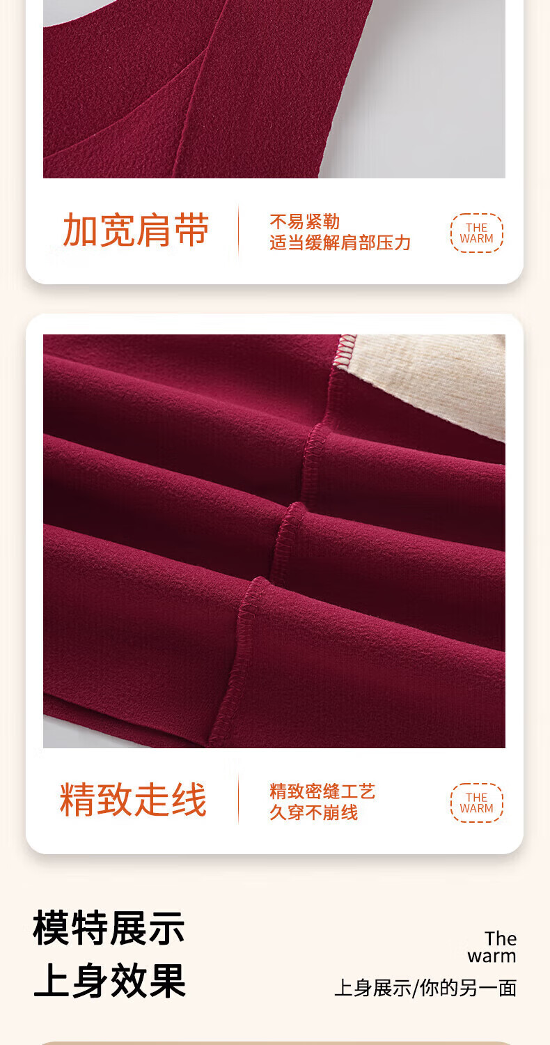 猫人(MiiOW)带兜保暖背心女带胸垫秋冬加绒加厚内穿打底本命年红色内衣 杏色 【蓄热保暖润肤】 2XL 【建议130-150斤】