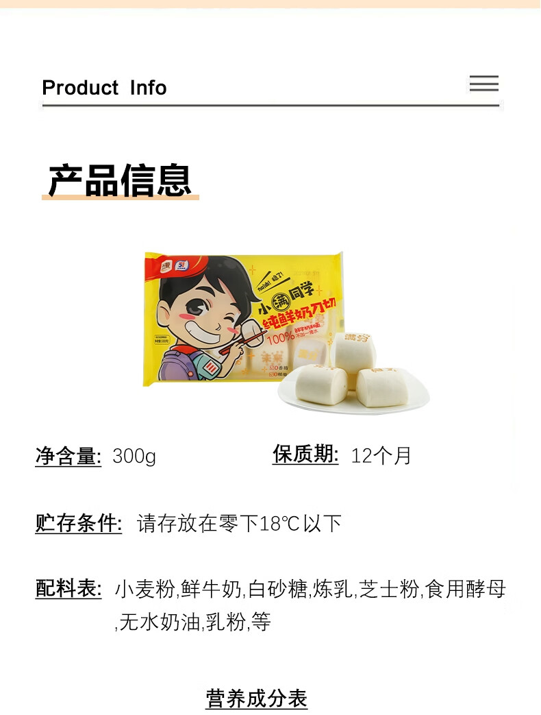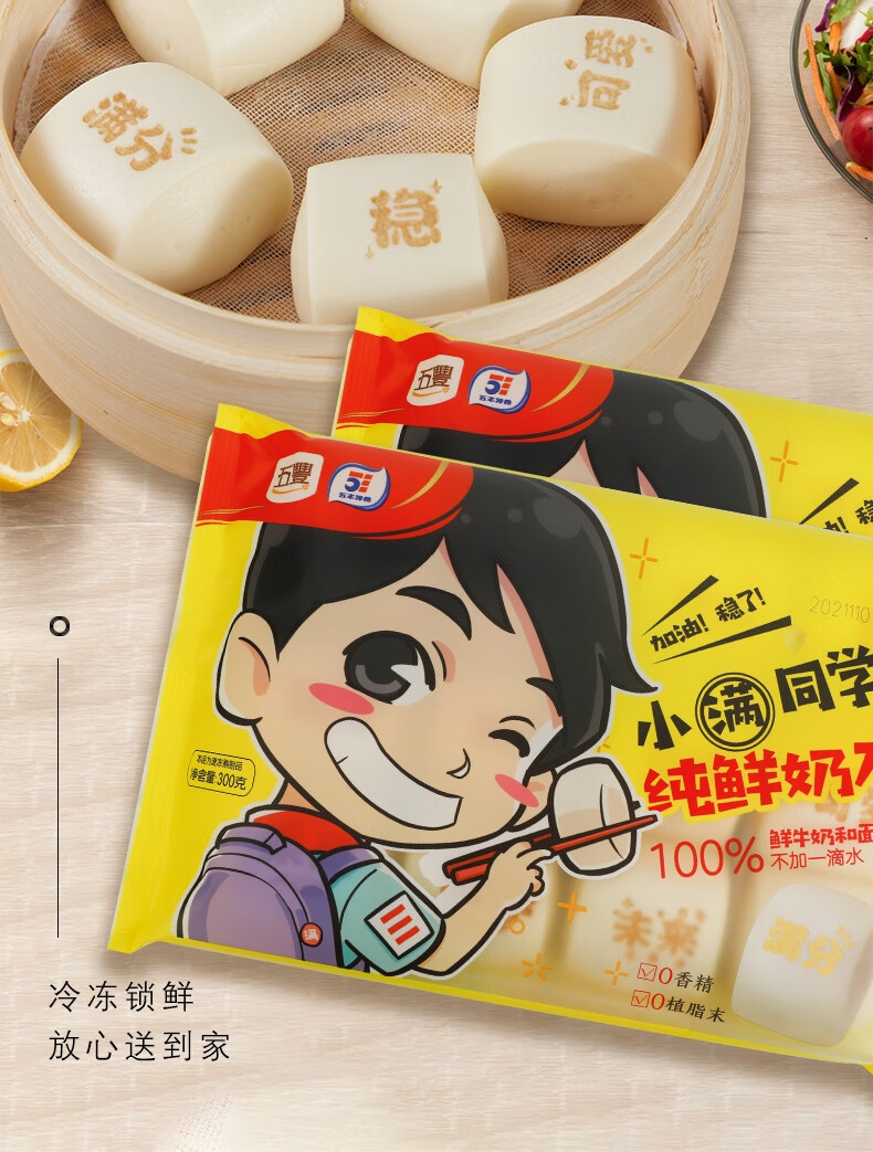 五丰 纯鲜奶刀切300g*2袋20只 儿童早餐面食纯牛奶馒头速冻方便馍馍