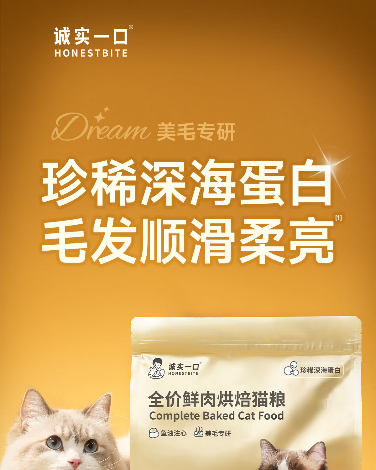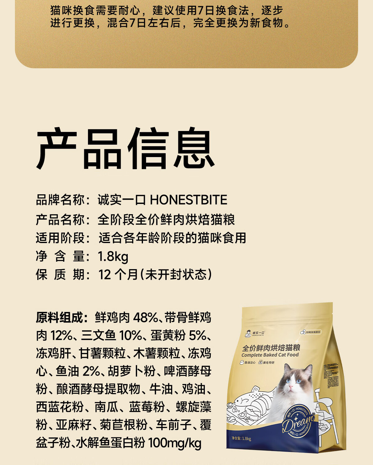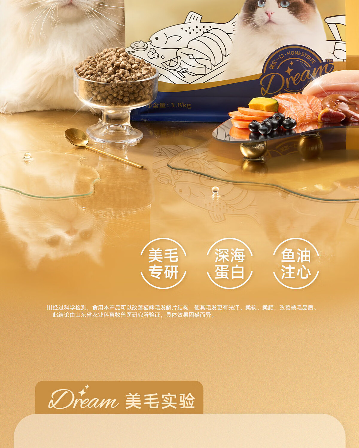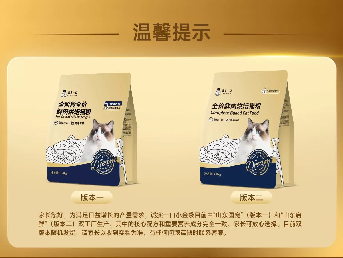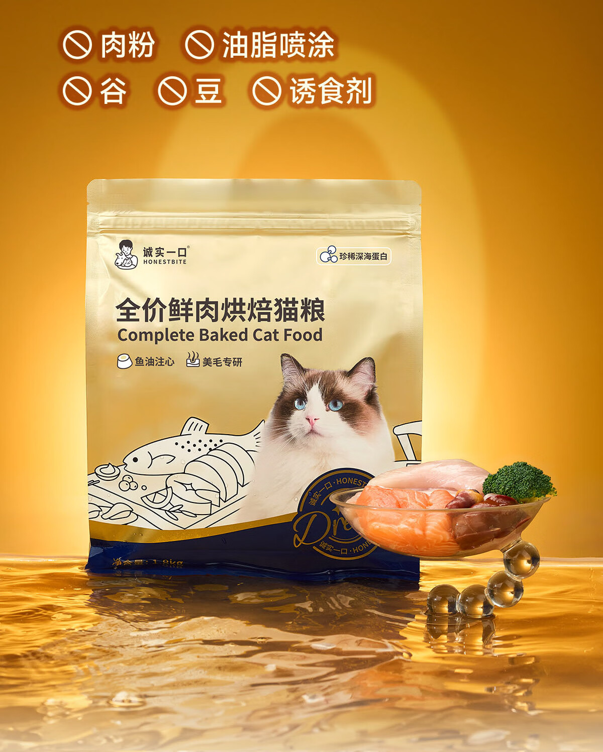 诚实一口奇迹小金袋美毛亮毛专研全鲜肉鸡肉烘焙猫粮1.8kg*3包