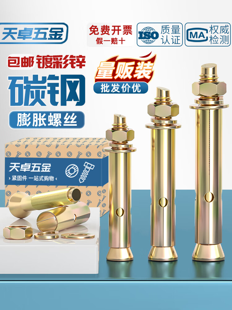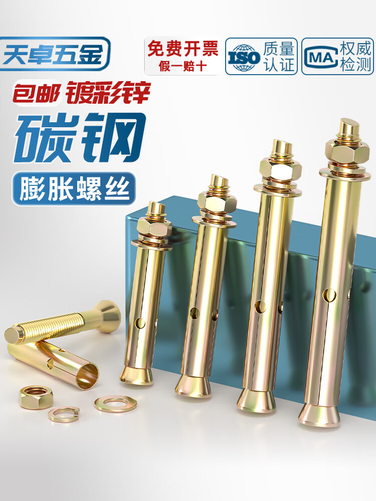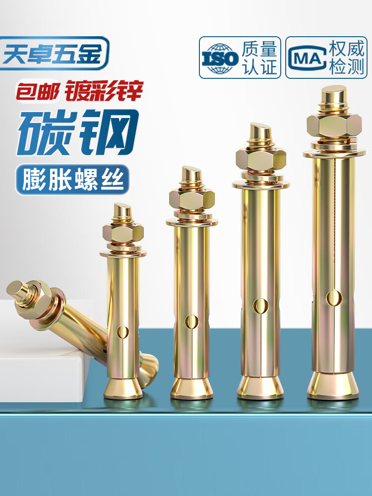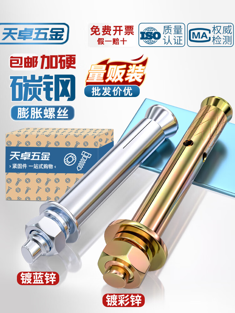 天卓五金国标铁镀彩锌外膨胀螺丝螺栓小头拉爆爆炸钉膨胀管MM6M8M10M12M14 ---以下为【铁镀彩锌 便宜】---