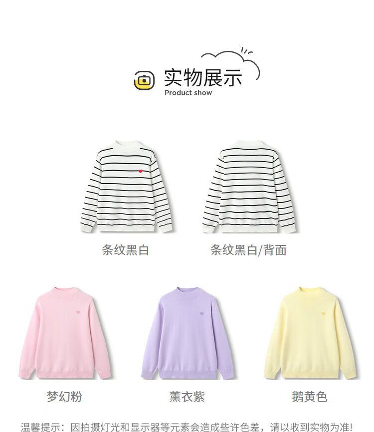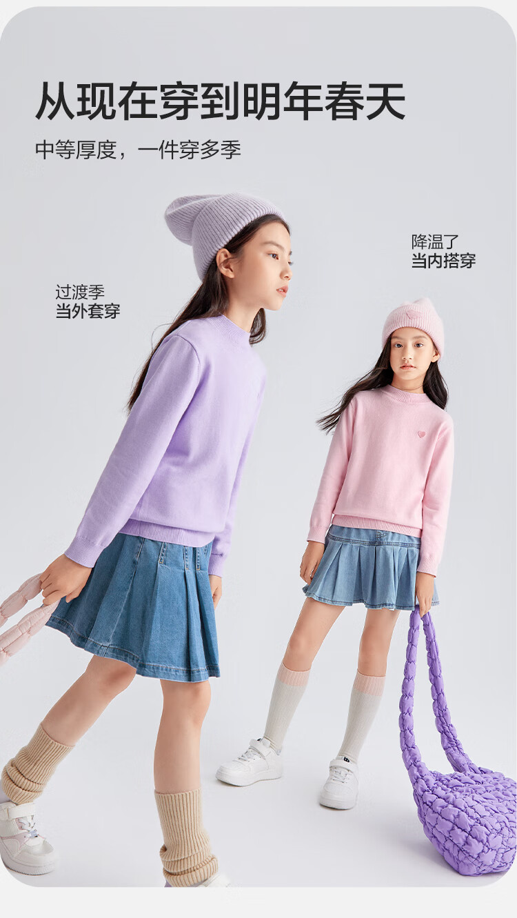 巴拉巴拉童装儿童打底衫女童秋冬装针织保暖毛衫打底套头毛衣 薰衣紫-70008 120cm