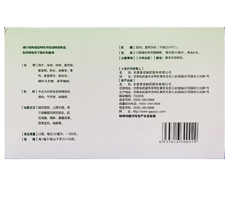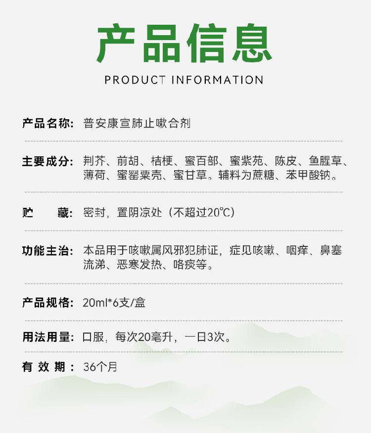 普安康 宣肺止嗽合剂 20ml*6支 疏风宣肺 止咳化痰 咳嗽药 咽痛咽痒 咳痰 感冒咳嗽 新冠指南用药
