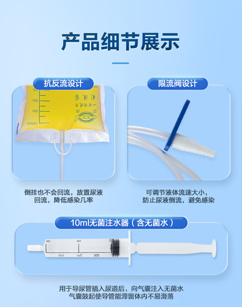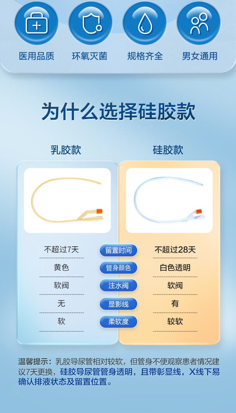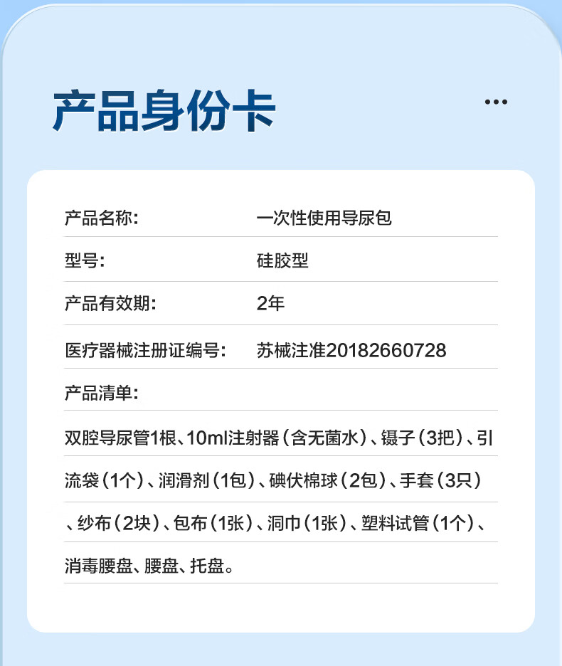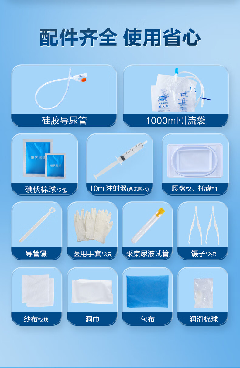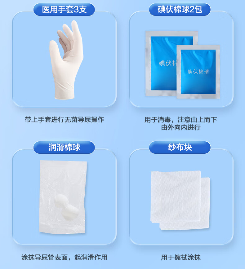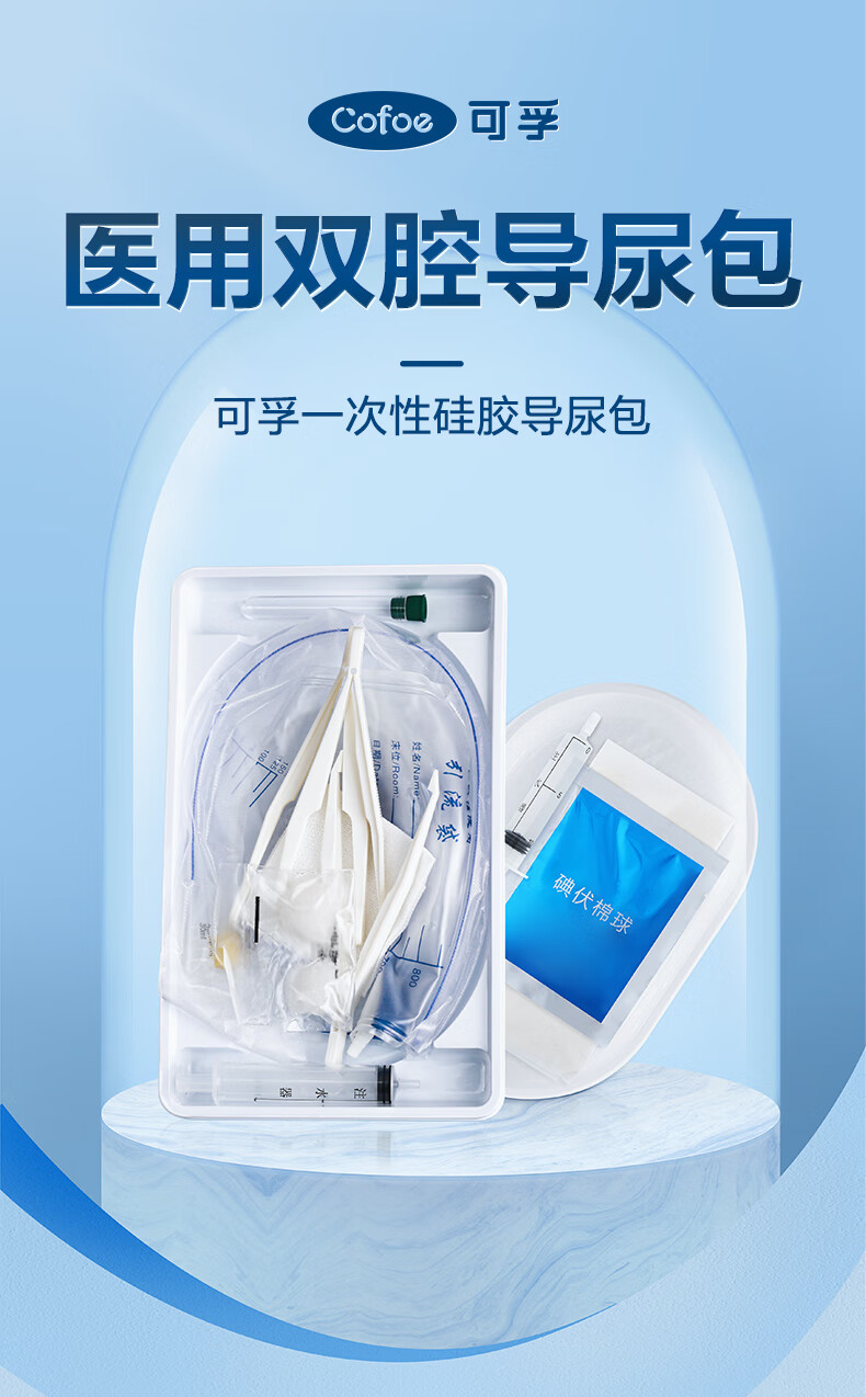 可孚 一次性医用无菌导尿包双腔硅胶28天导尿管成人男女通用18号