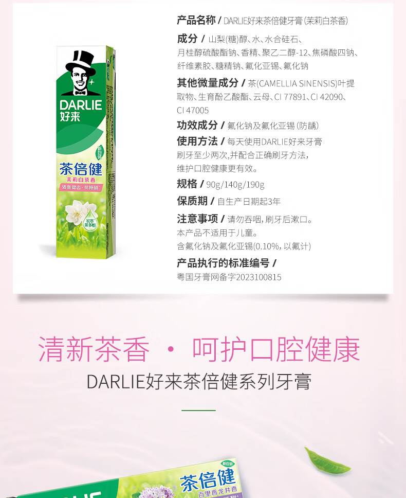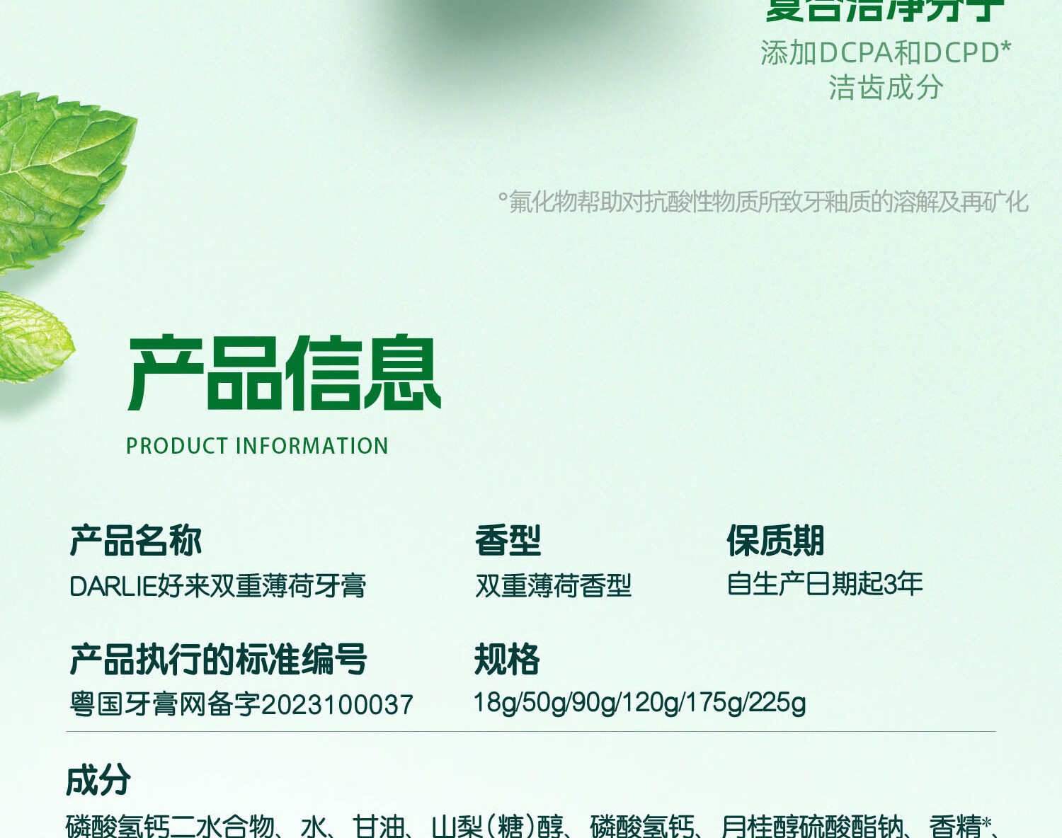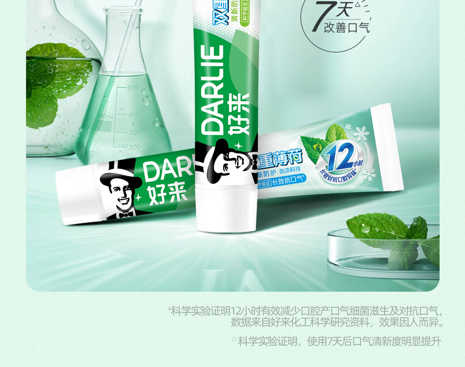 好来(DARLIE)黑人牙膏小苏打茶倍健双重薄荷黄牙渍清新口气含氟 清新多效630g