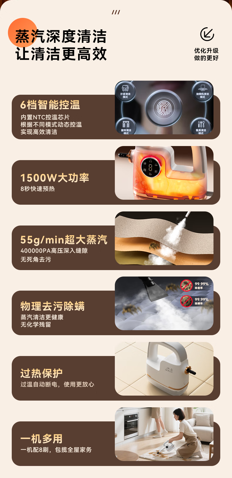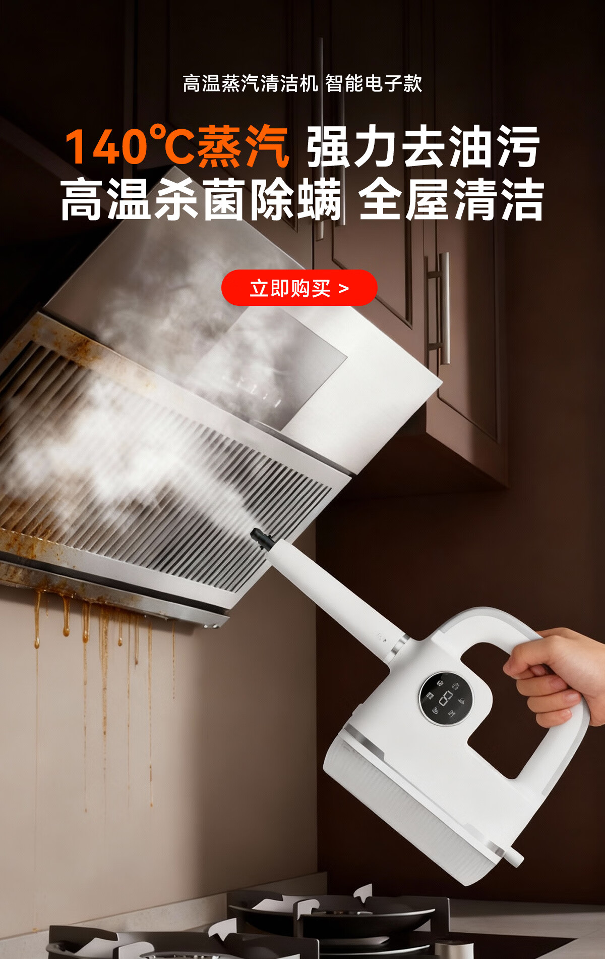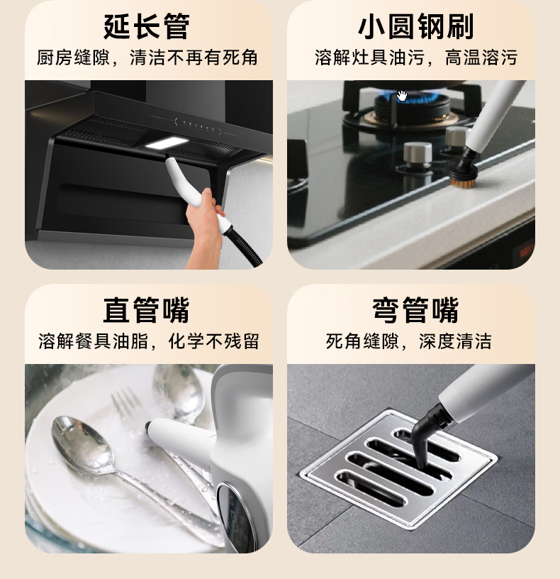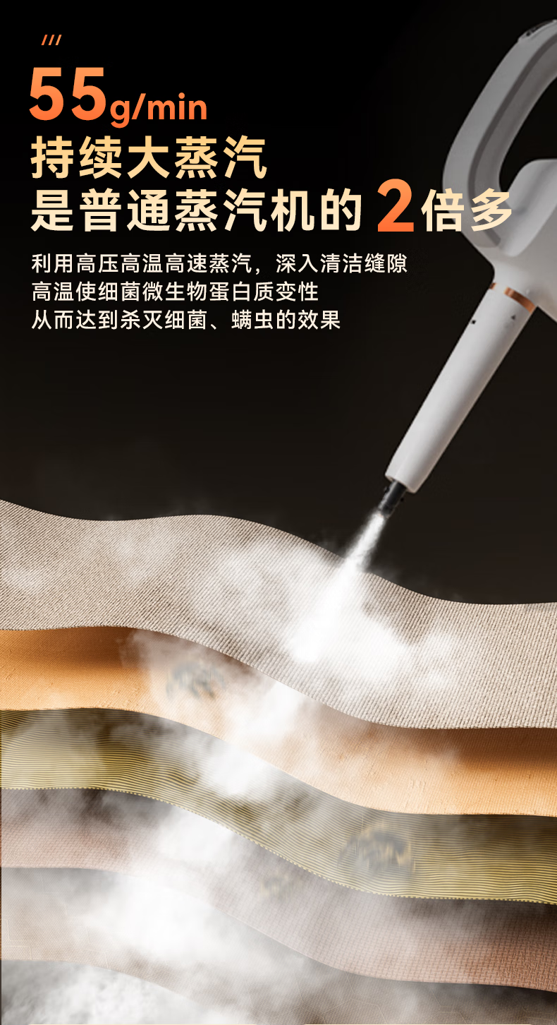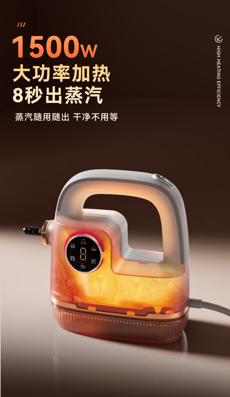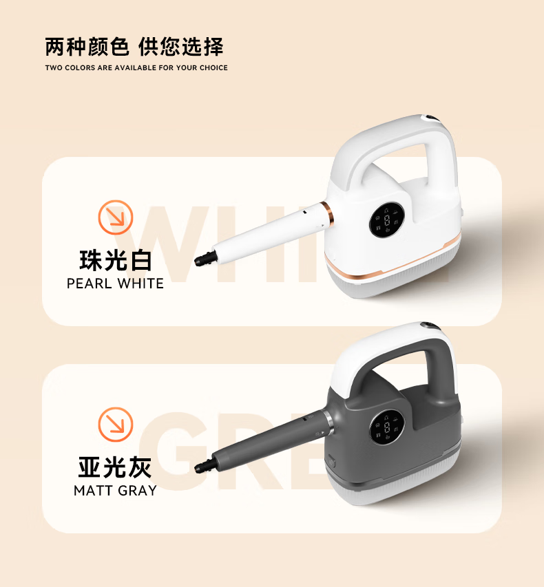 小狗【智能电子款】高压蒸汽清洁机家用窗户厨房清洁油污油烟机空调全屋清洗机高温杀菌除螨清洁神器 【99%除菌率100%除螨】850毫升哑光灰