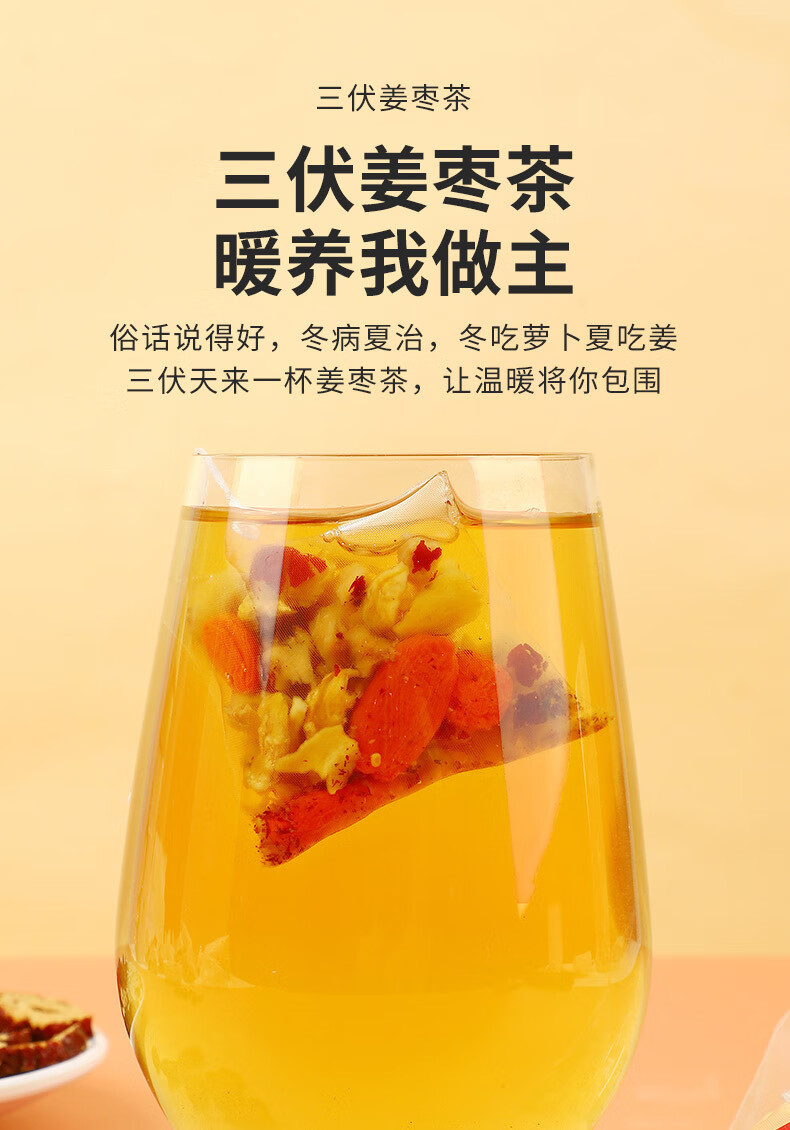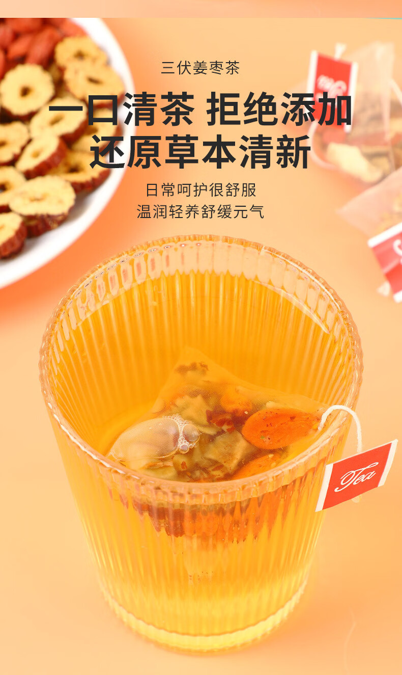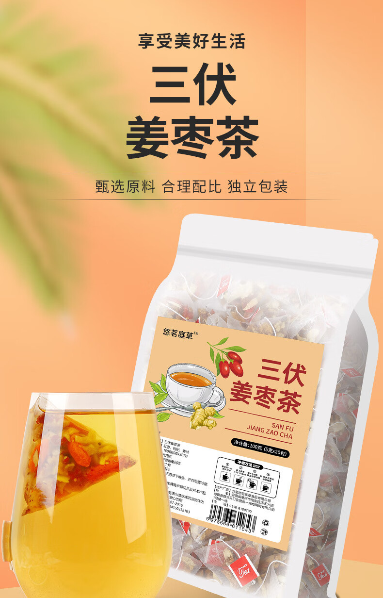 悠茗花草无糖暴汗生姜冲泡茶红枣干姜枸杞天组合花茶养颜 三伏姜枣茶 100g*20袋
