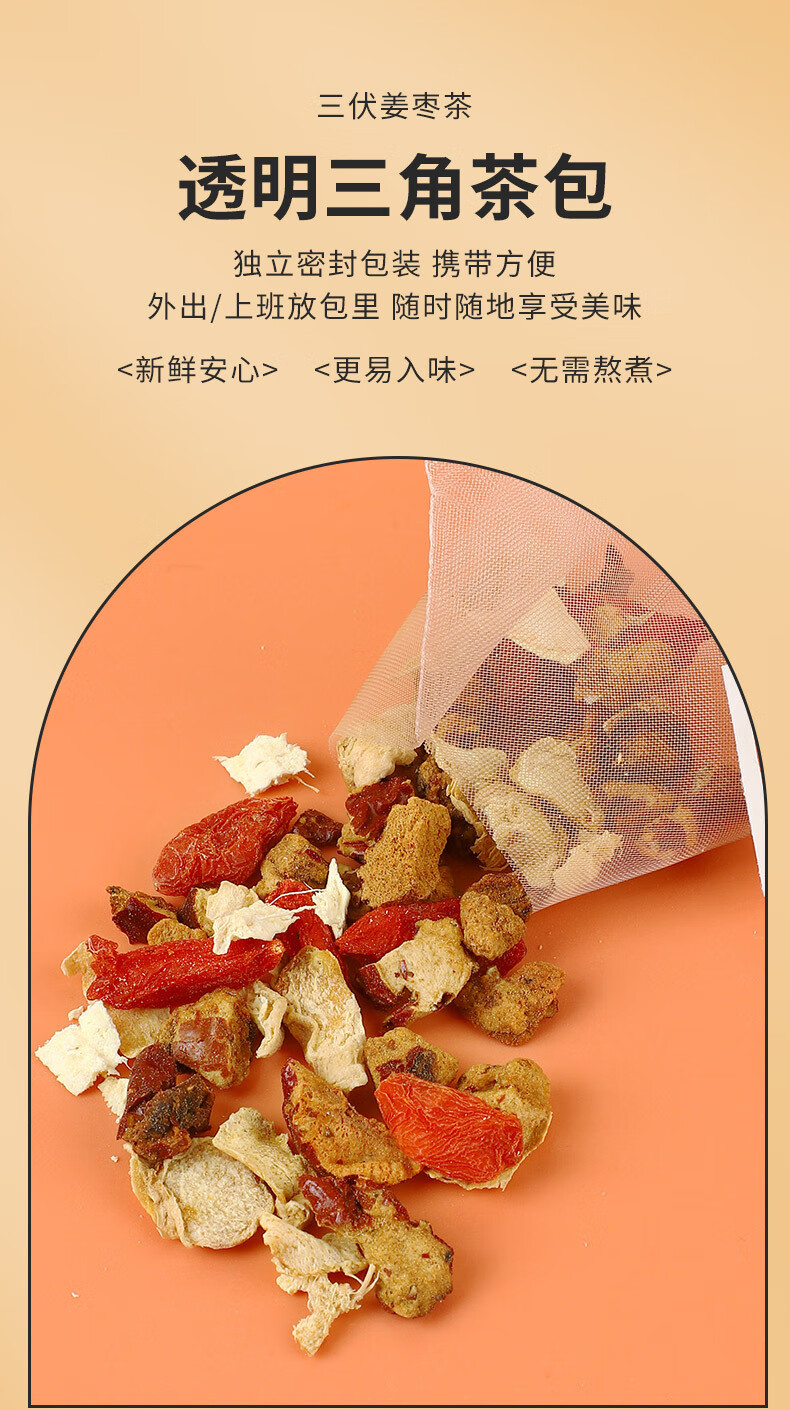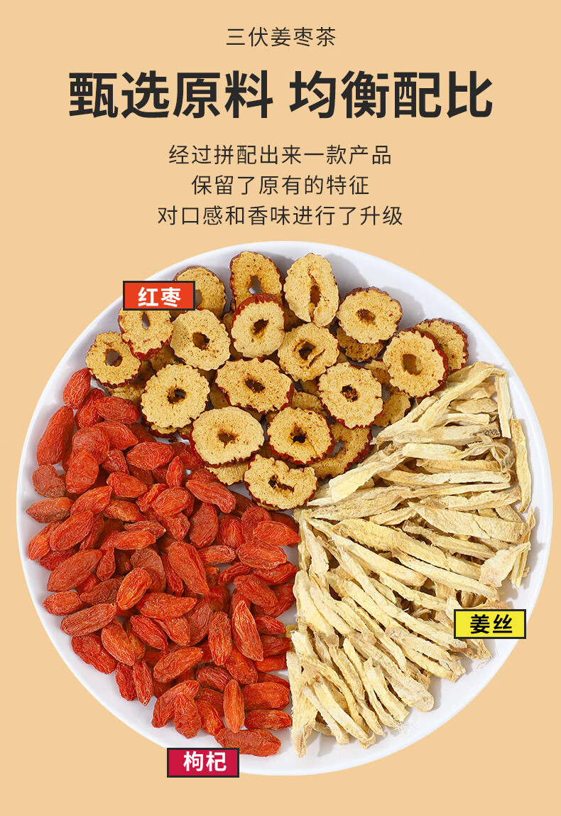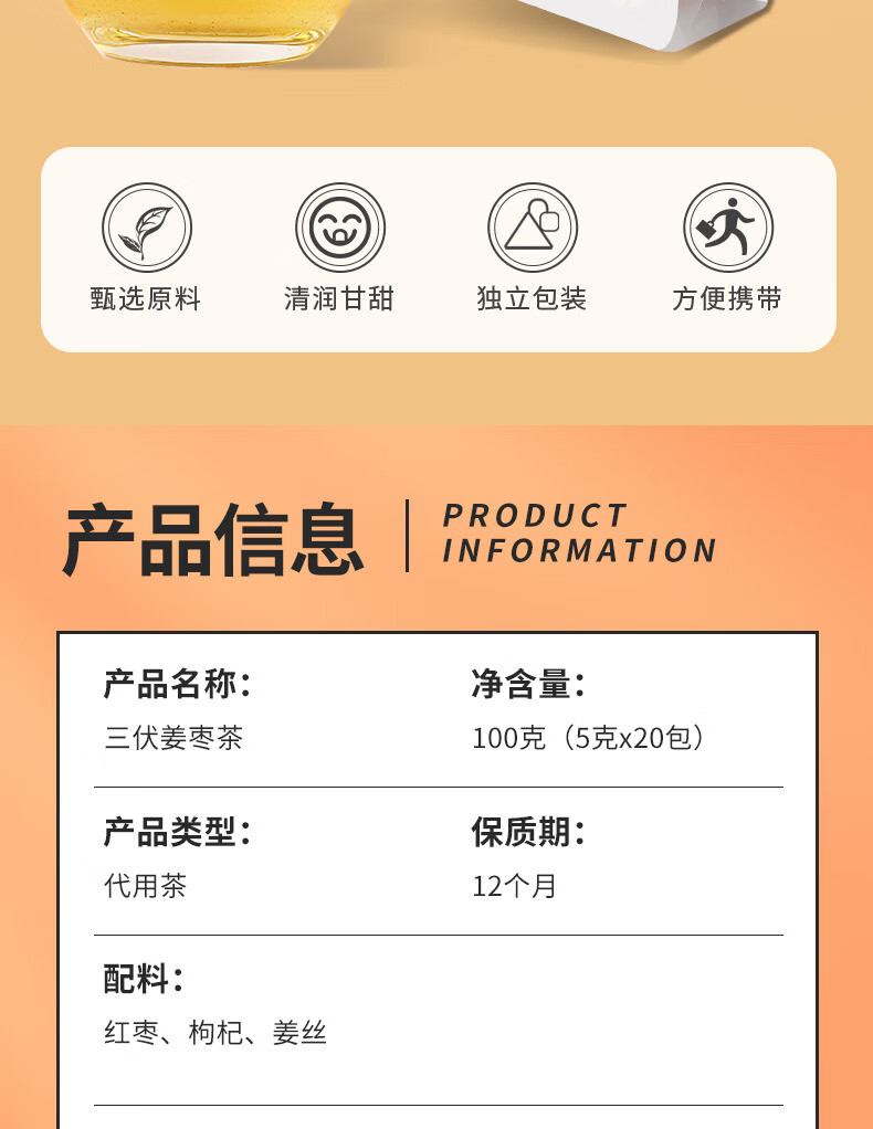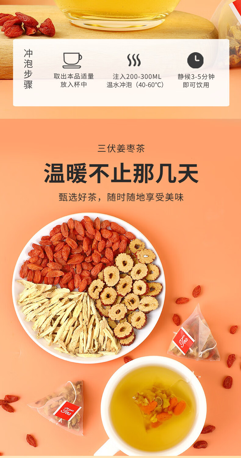 悠茗花草无糖暴汗生姜冲泡茶红枣干姜枸杞天组合花茶养颜 三伏姜枣茶 100g*20袋
