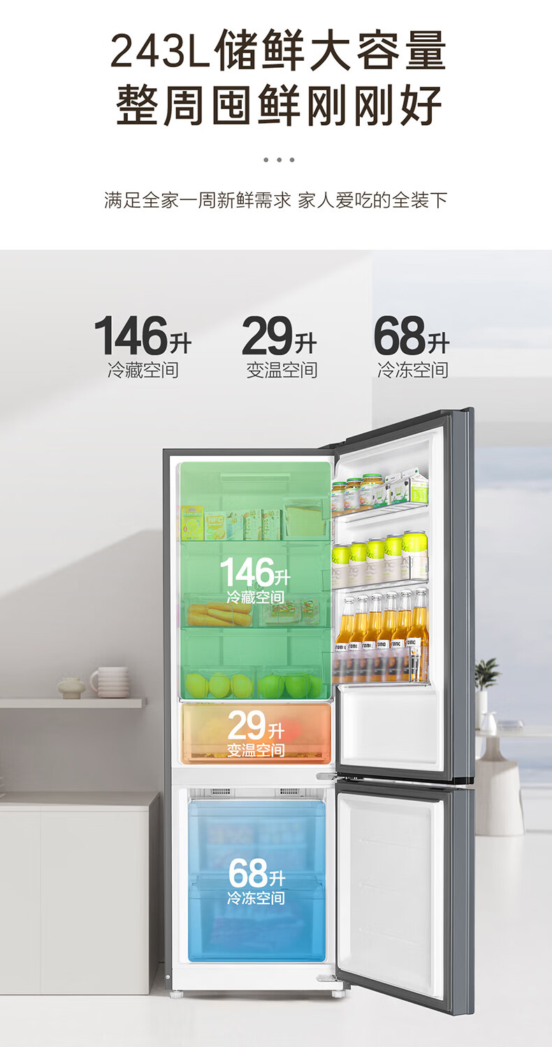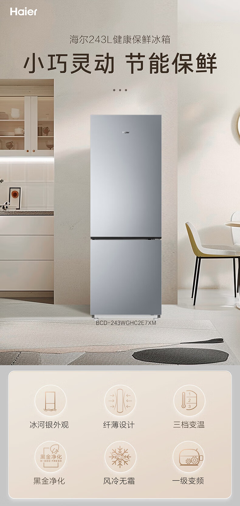 海尔冰箱双开门二门风冷无霜一级能效冰箱家用超薄双变频节能省电小冰箱大容量以旧换新补贴 【热销省电冰箱】243升+风冷无霜+深冷速冻